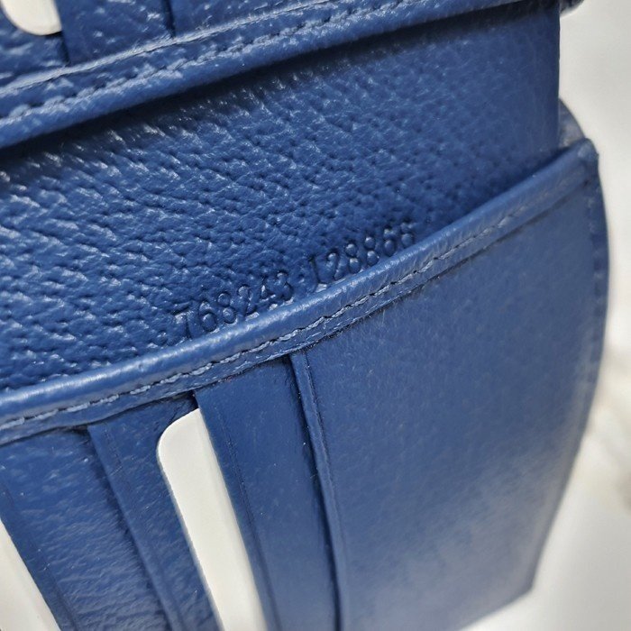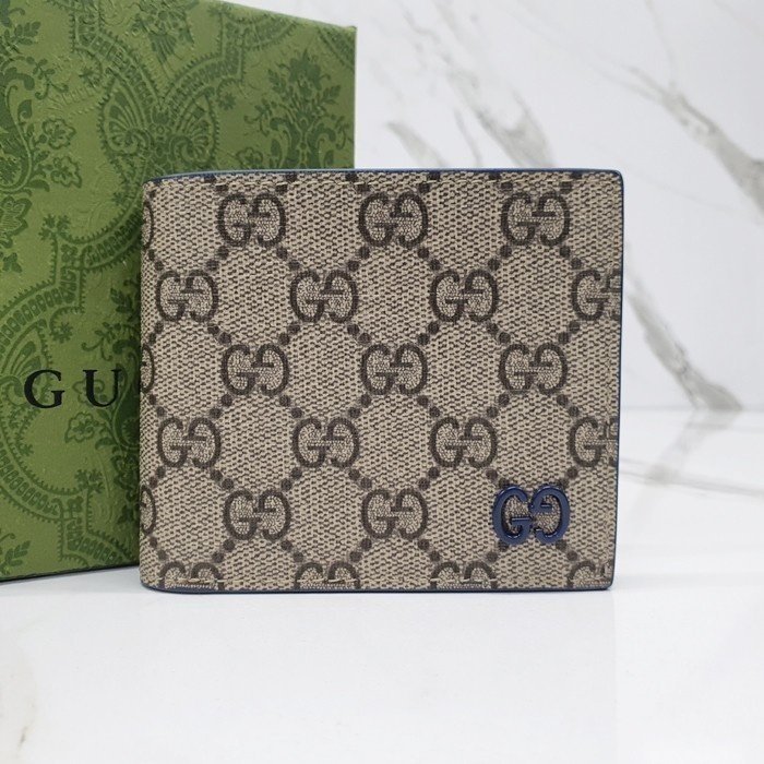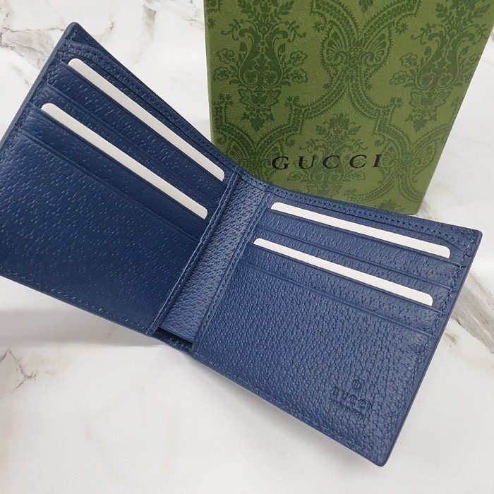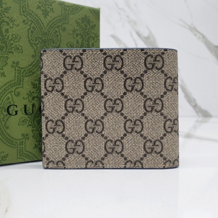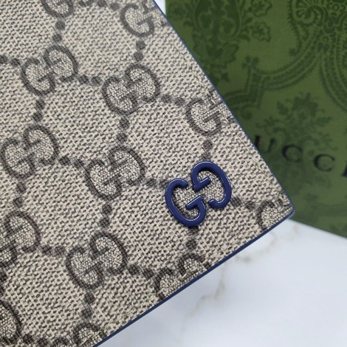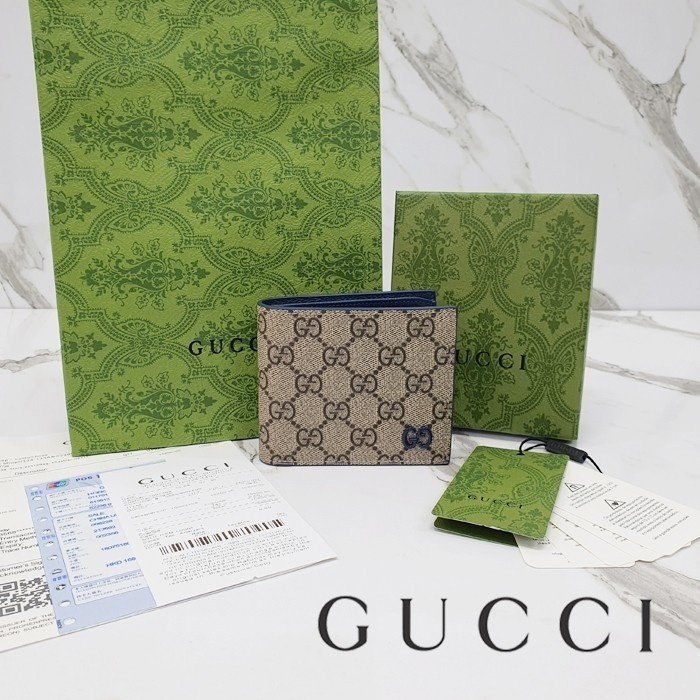 🔘색상 : 베이지&블루레더 🔘사이즈 : W11cm x H9cm 🔘기타정보 : -제품 NO. 768243 -남성용 반지갑 -소재 GG 수프림 캔버스/최고급 소가죽 -포켓 지폐2/카드8/보조2 -본품+더스트+박스+책자+영수증+쇼핑백 풀구성