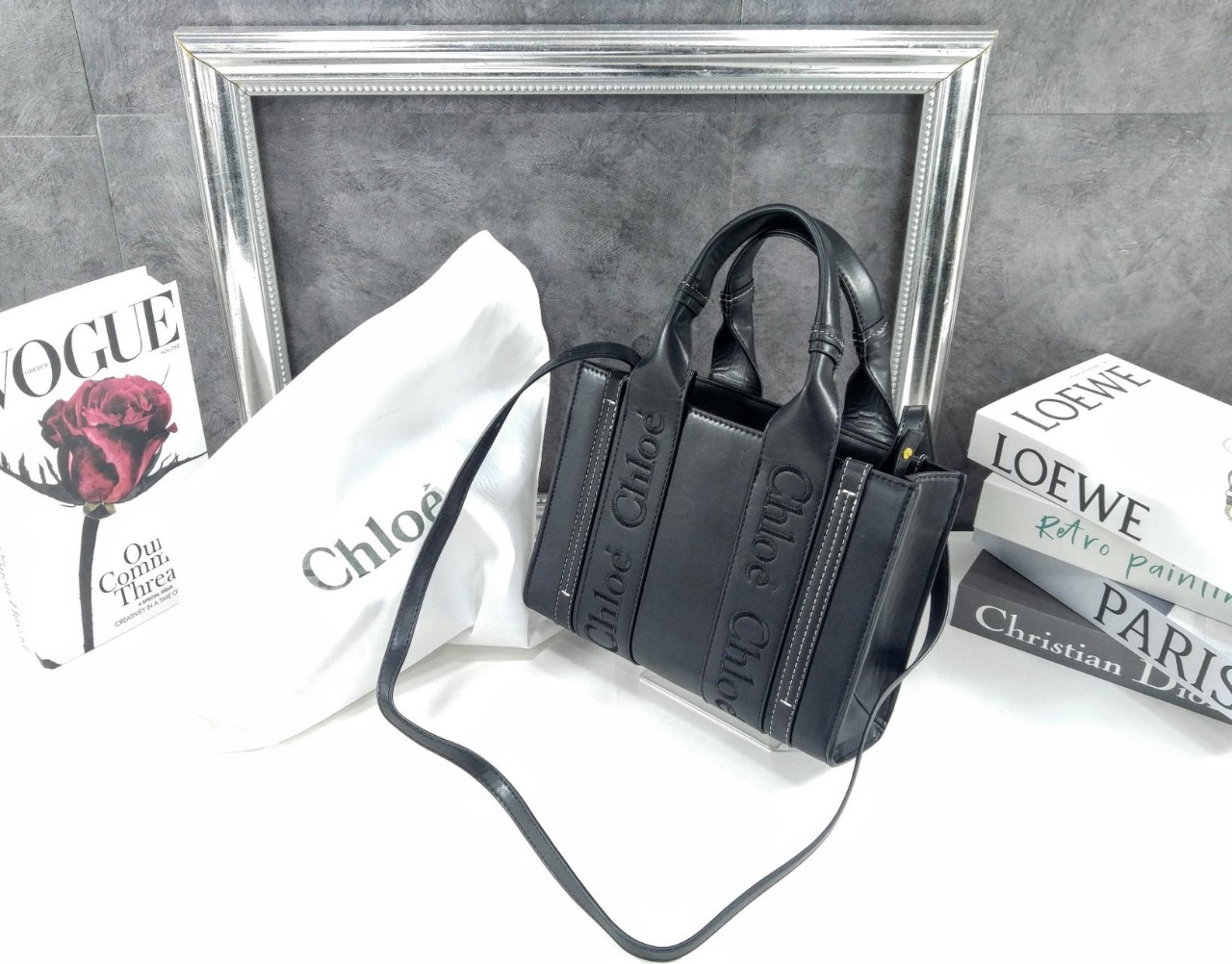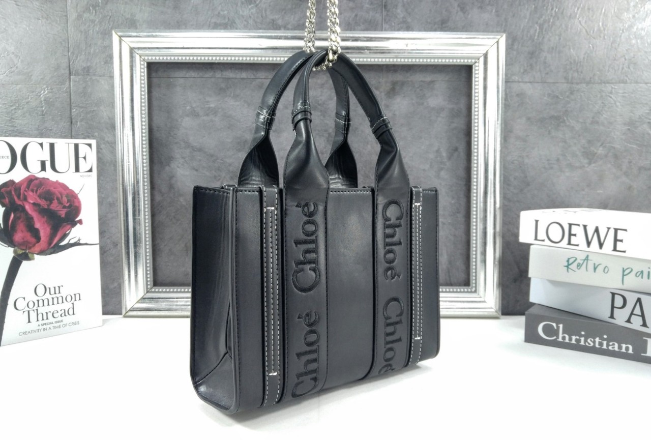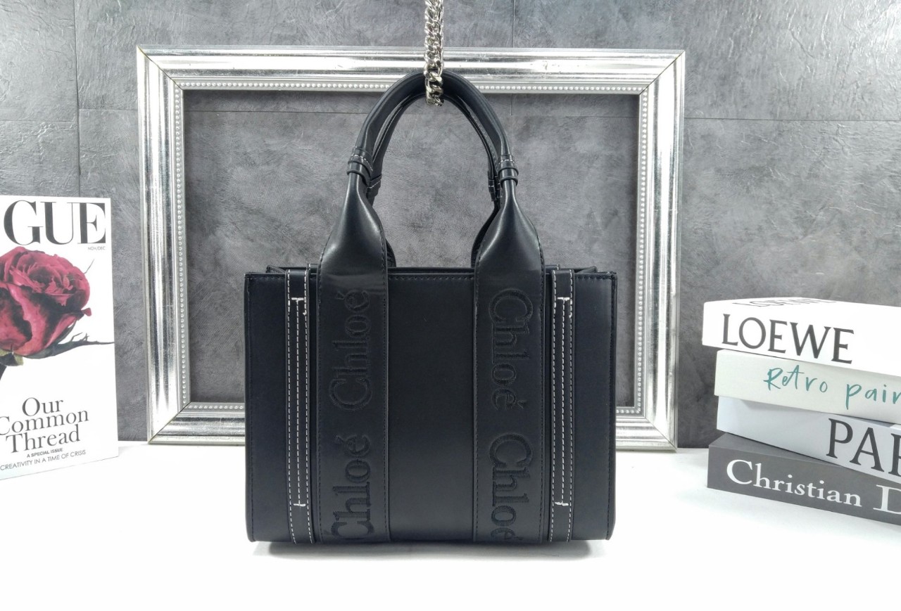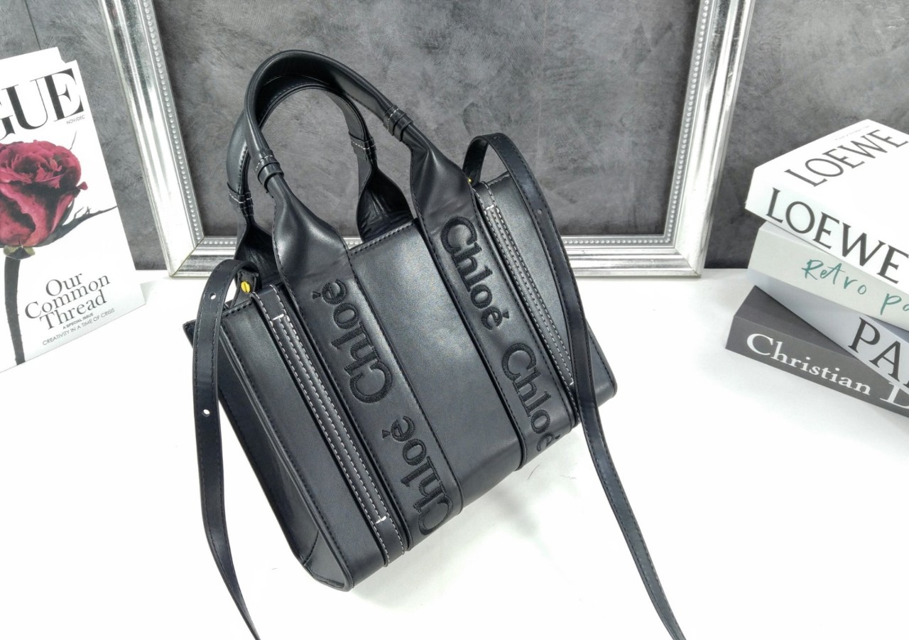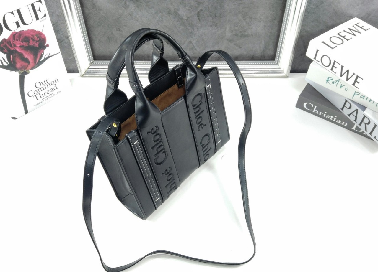 끌로에 로고 자수 장식의 부드러운 카프스킨 토트 백 착용방법: 팔에 걸치거나 숄더 백 & 크로스 백으로 착용