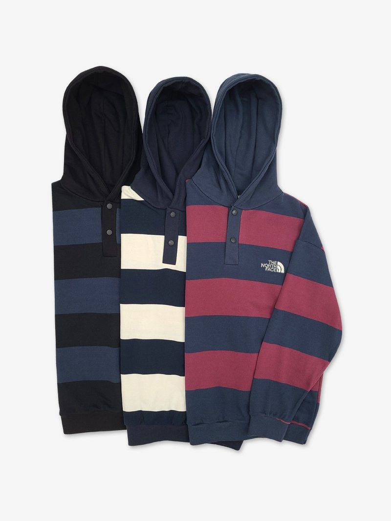 [국내배송]노스페이스 스트라이프 럭비 후드 맨투맨