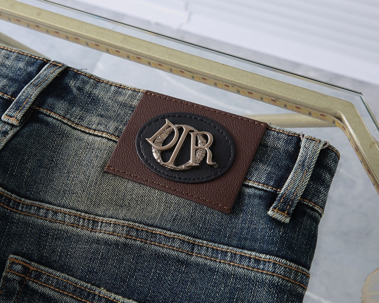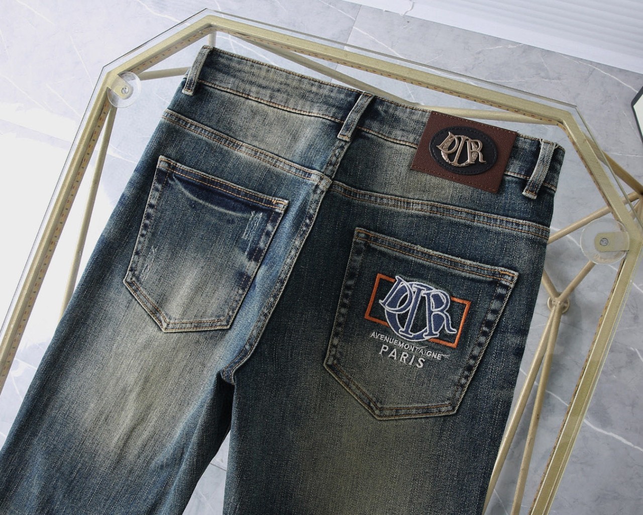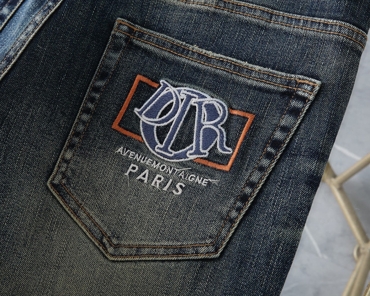 [국내배송]디올 신상 자수로고 레더패치 스판 데님진