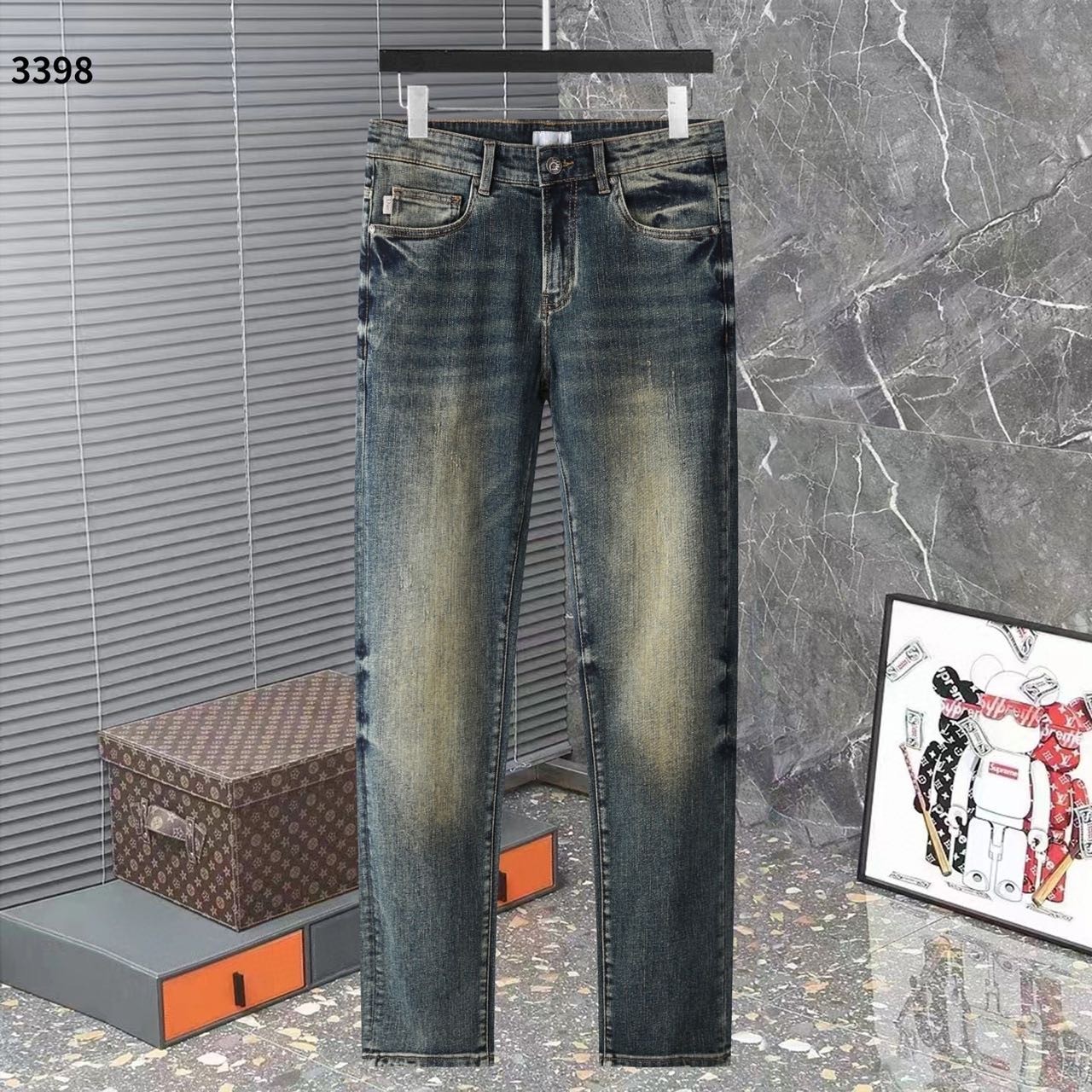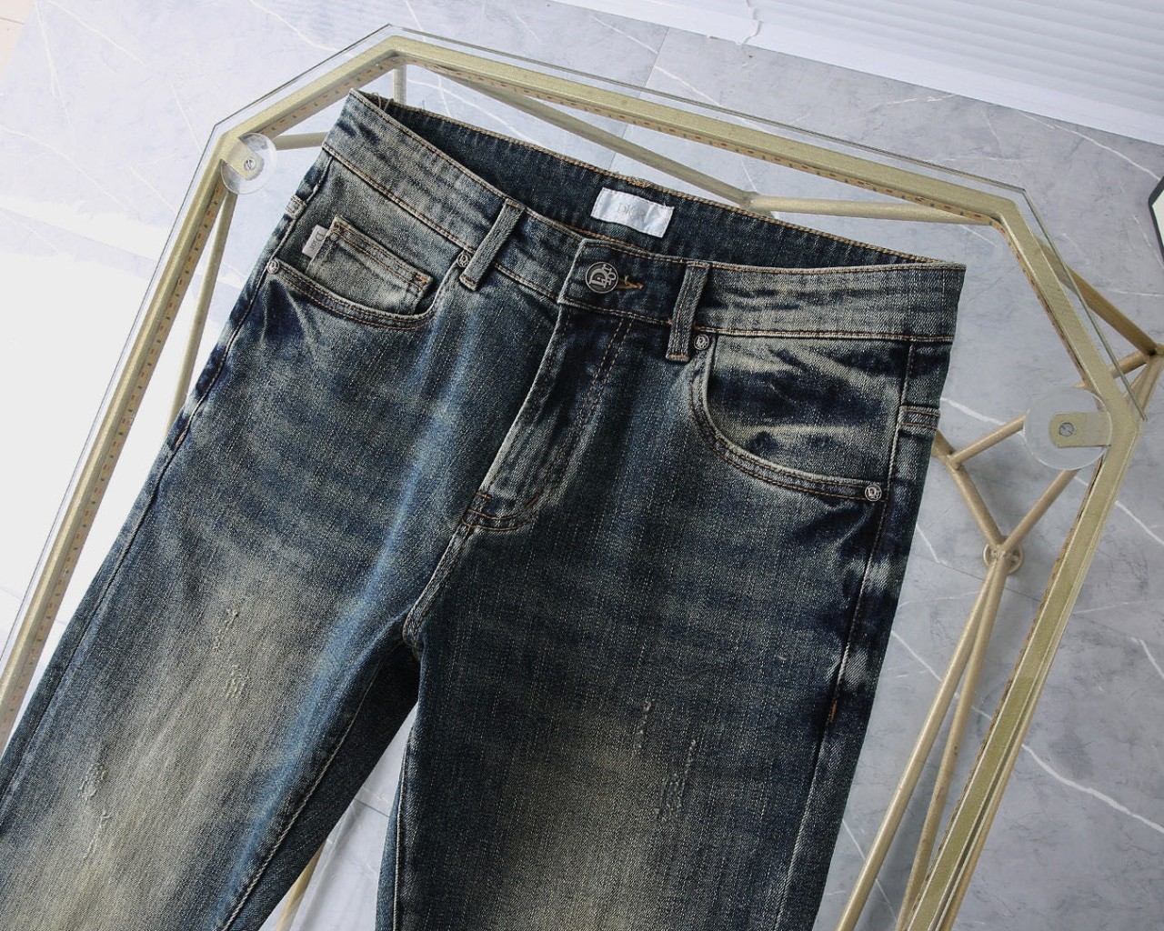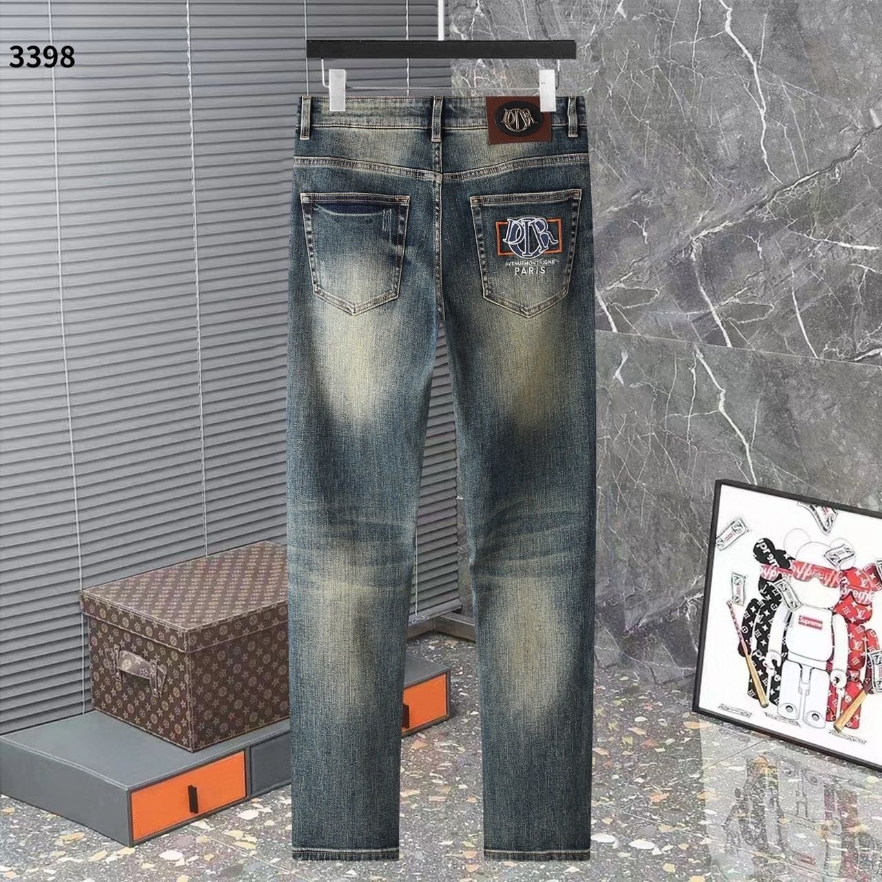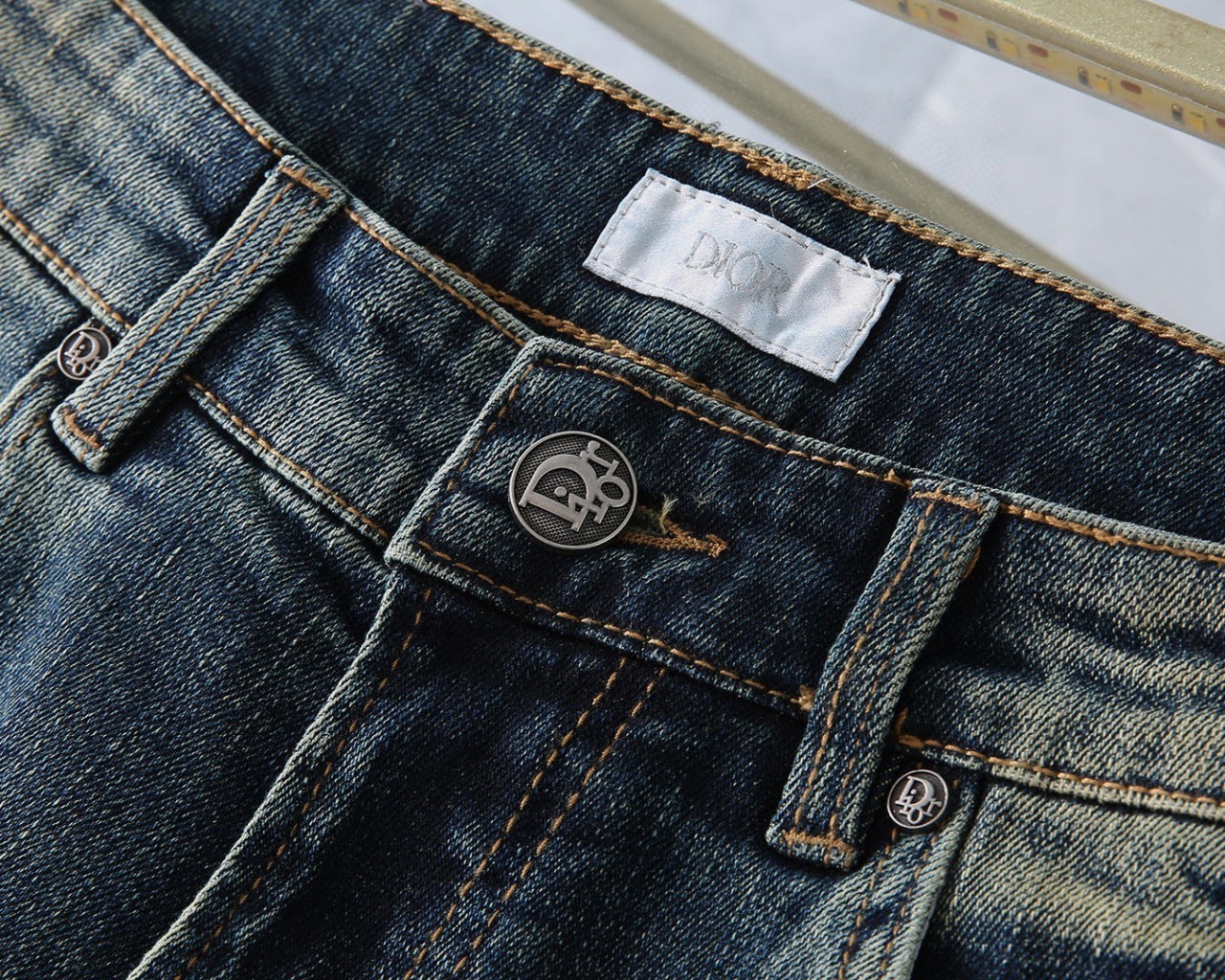 [국내배송]디올 신상 자수로고 레더패치 스판 데님진