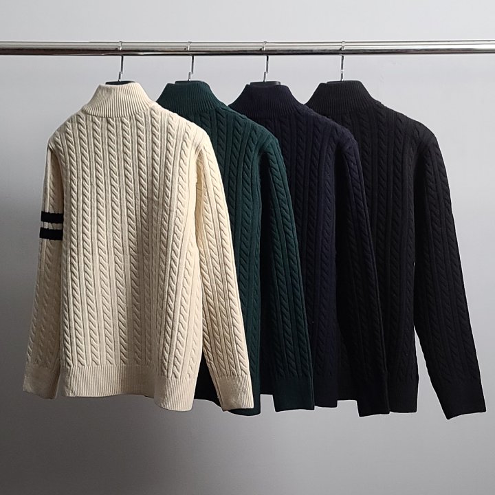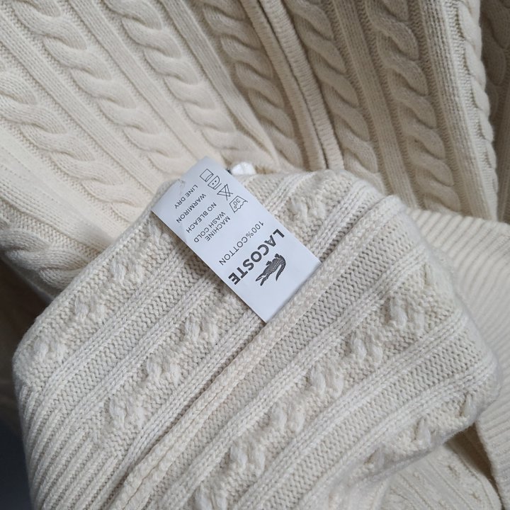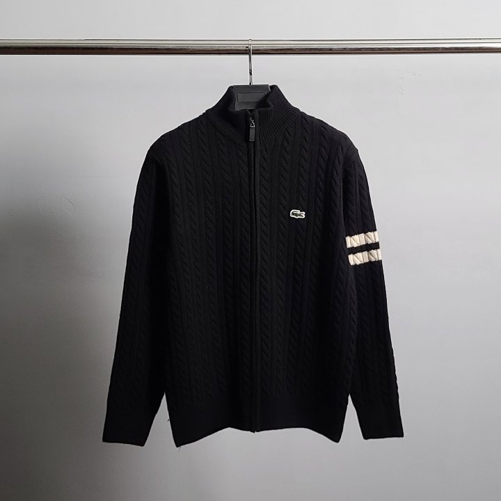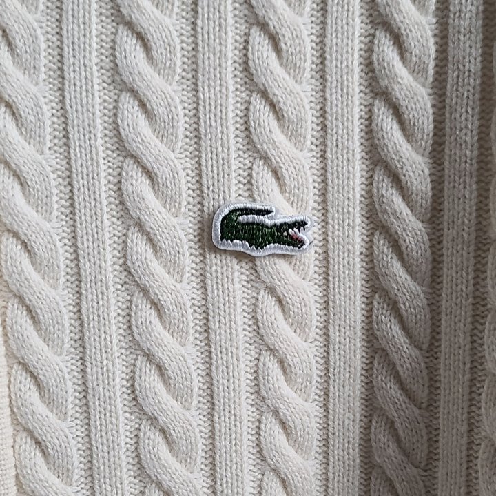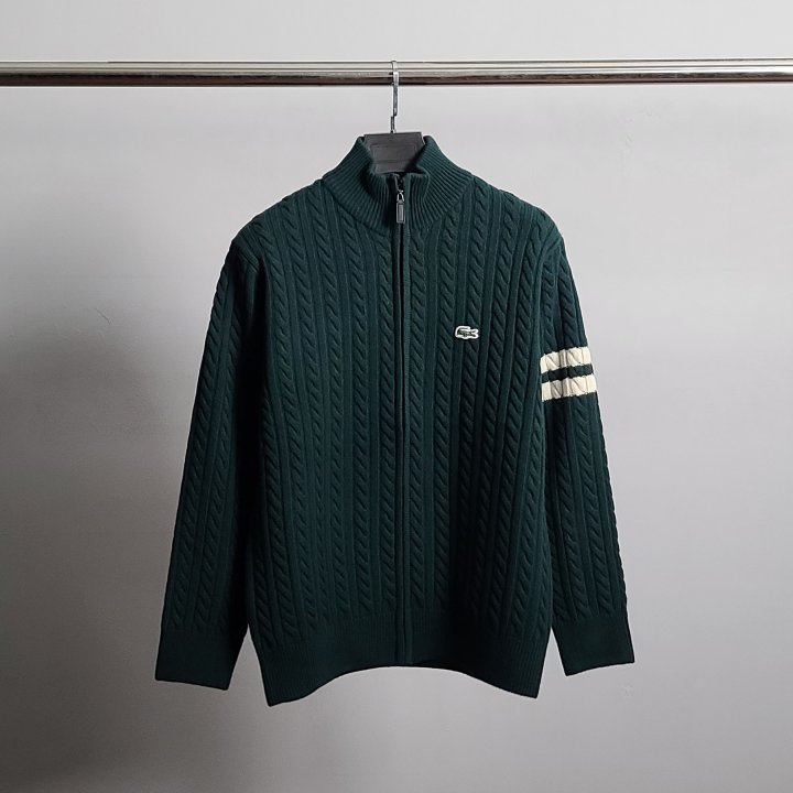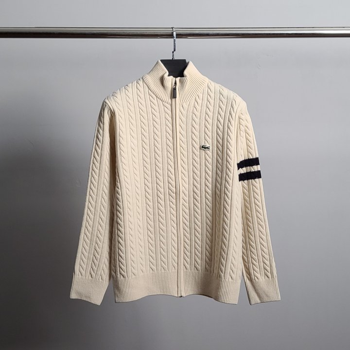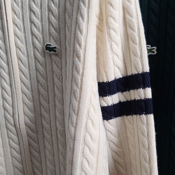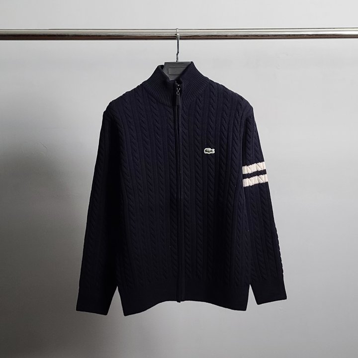 [국내배송]라코스테 로고와펜 완장 케이블 니트 집업