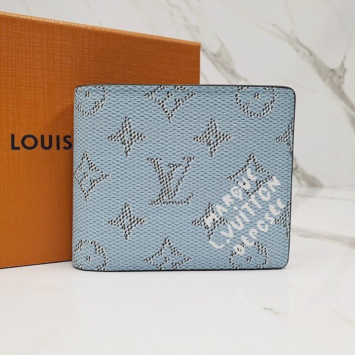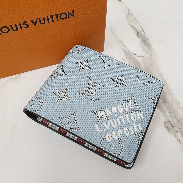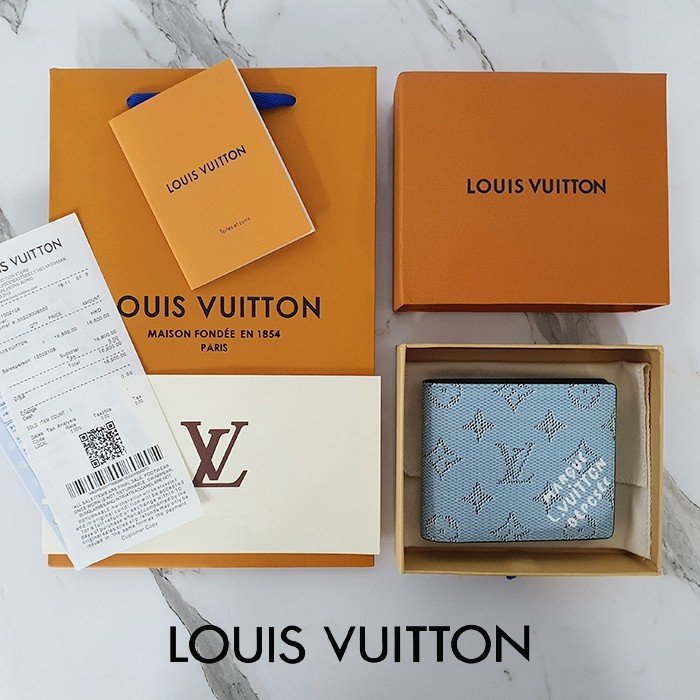 🔘색상 : 블루 🔘사이즈 : W11.5cm x H9cm 🔘기타정보 : -제품 NO. M14691 -남성용 반지갑 -소재 모노그램 헤리티지 캔버스/최고급 소가죽 -포켓 지폐2/카드5/보조2 -본품+더스트+박스+책자+영수증+쇼핑백 풀구성