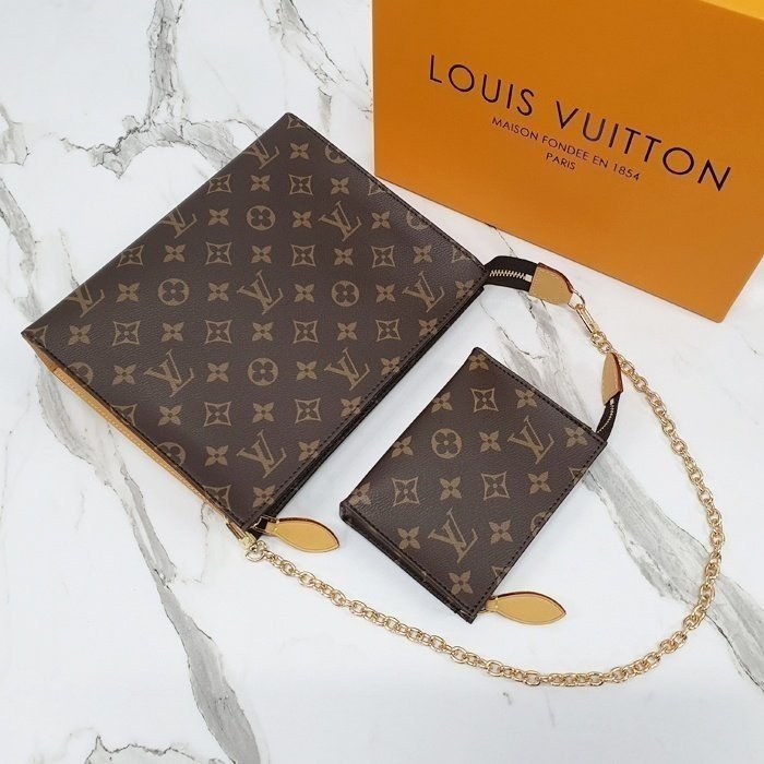 🔘색상 : 브라운 🔘사이즈 : W25cm x H20cm x D5.5cm 🔘기타정보 : -제품 NO. M81412 -여성용 파우치 or 숄더백 -소재 모노그램 캔버스/최고급 소가죽 -본품+소형파우치+더스트+박스+책자 풀구성