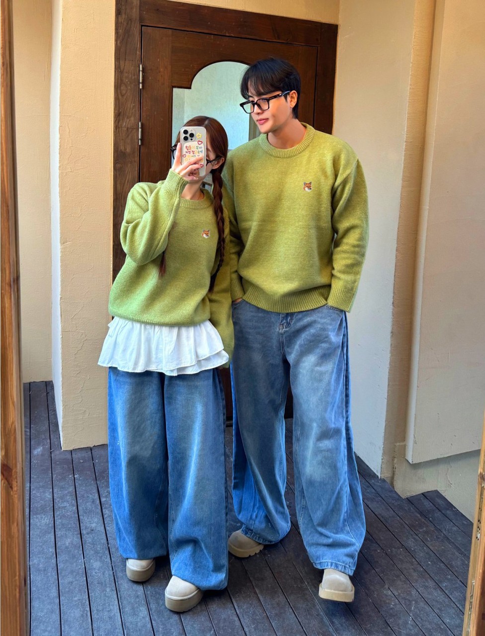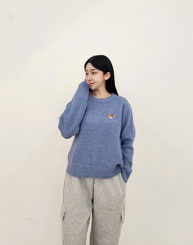 [국내배송]메종키츠네 라운드넥 캐시 니트