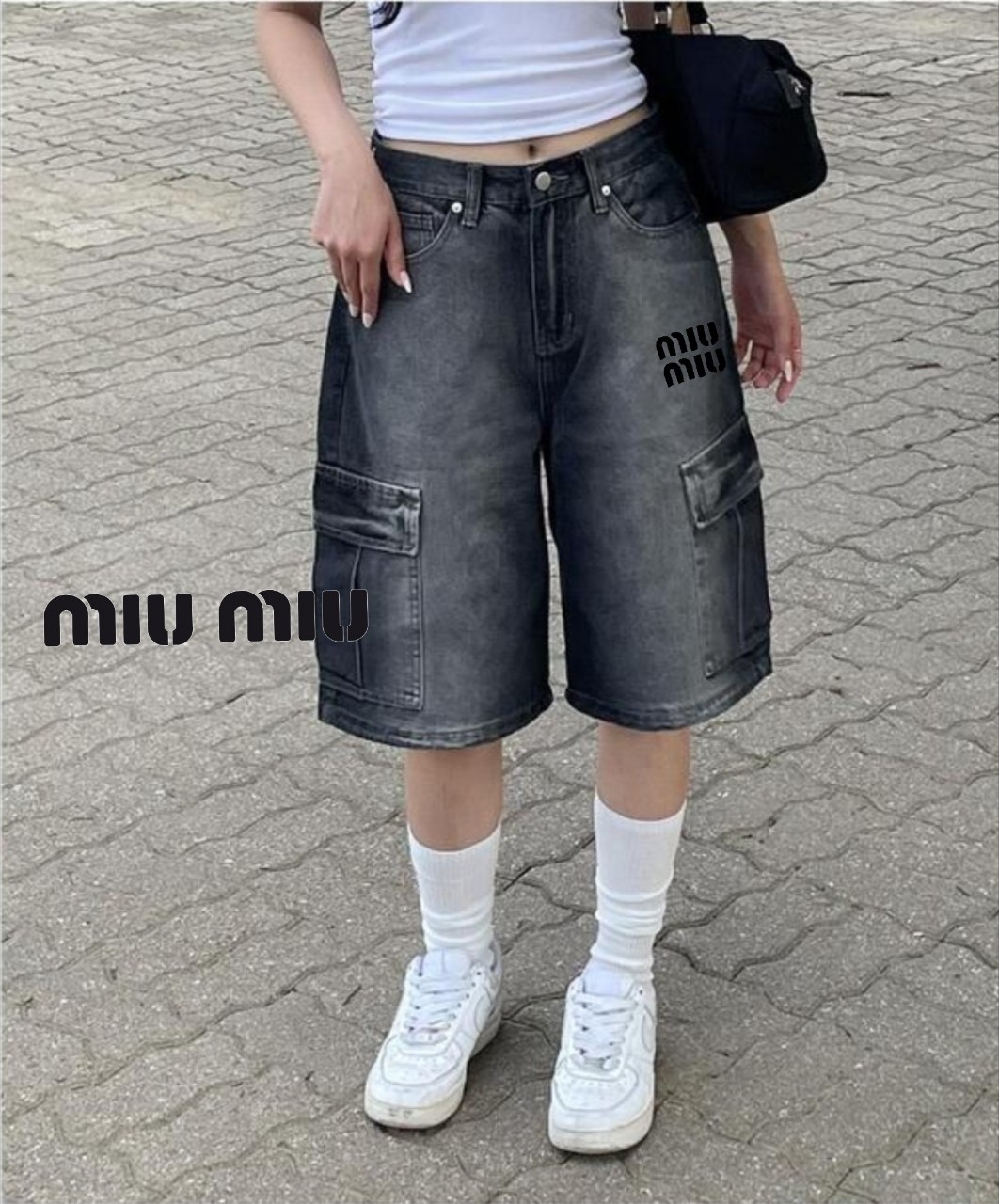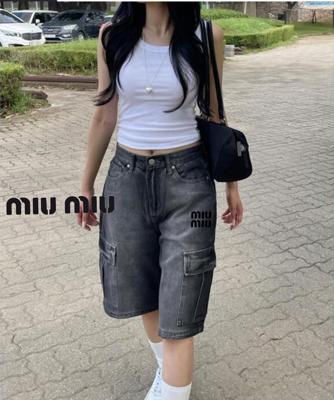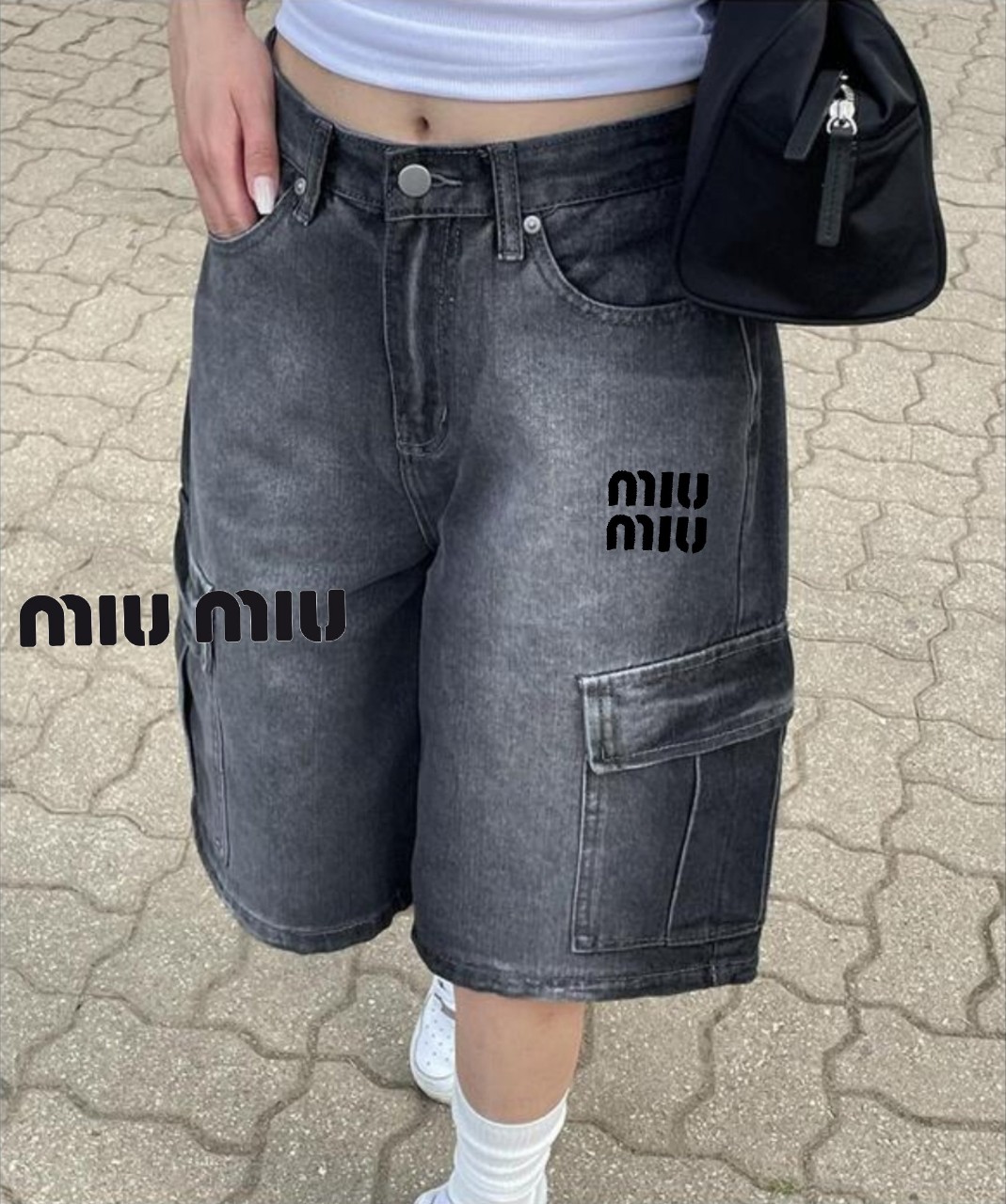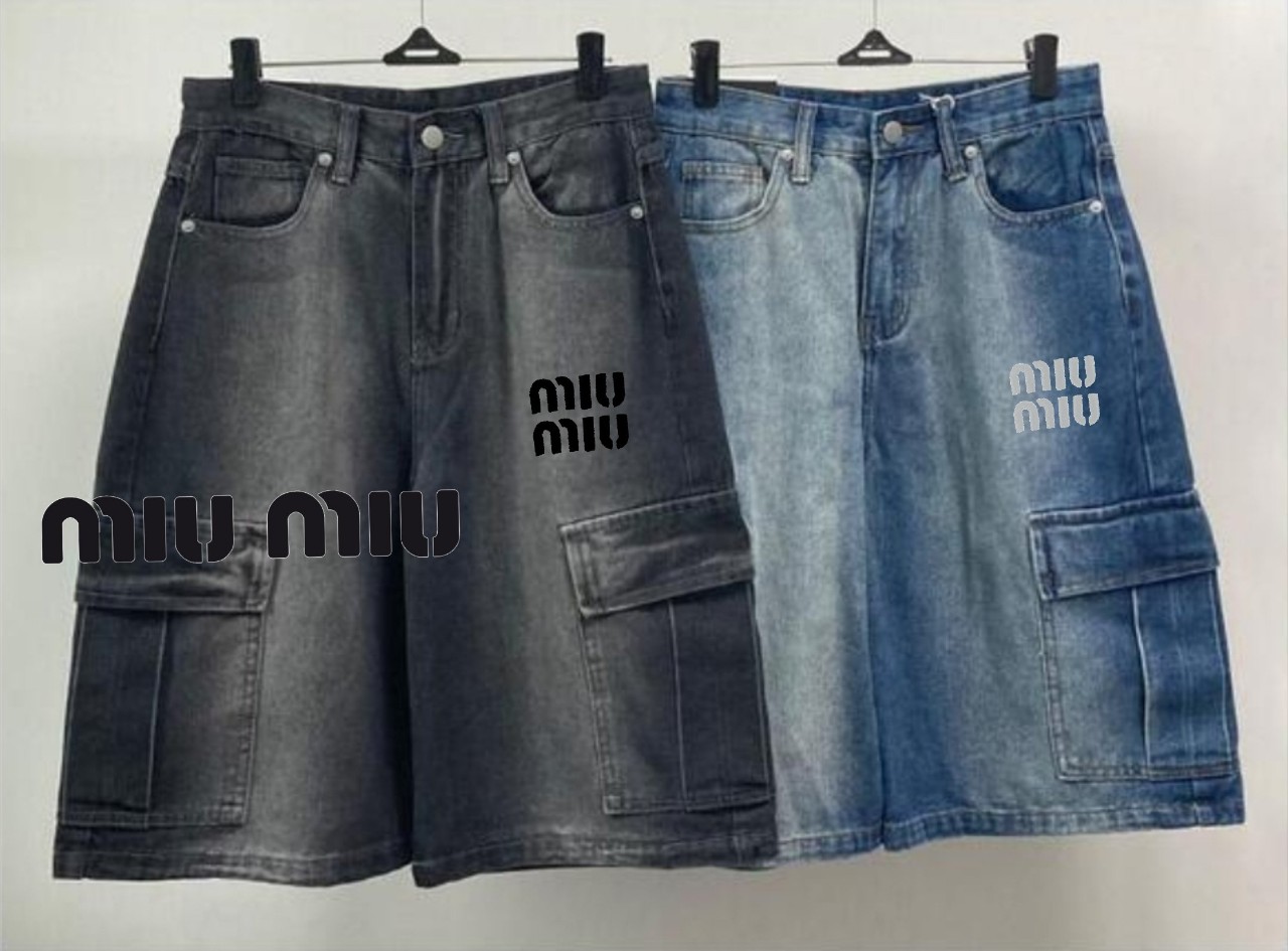 [국내배송]미우미우 자수로고 카고 버뮤다 데님팬츠