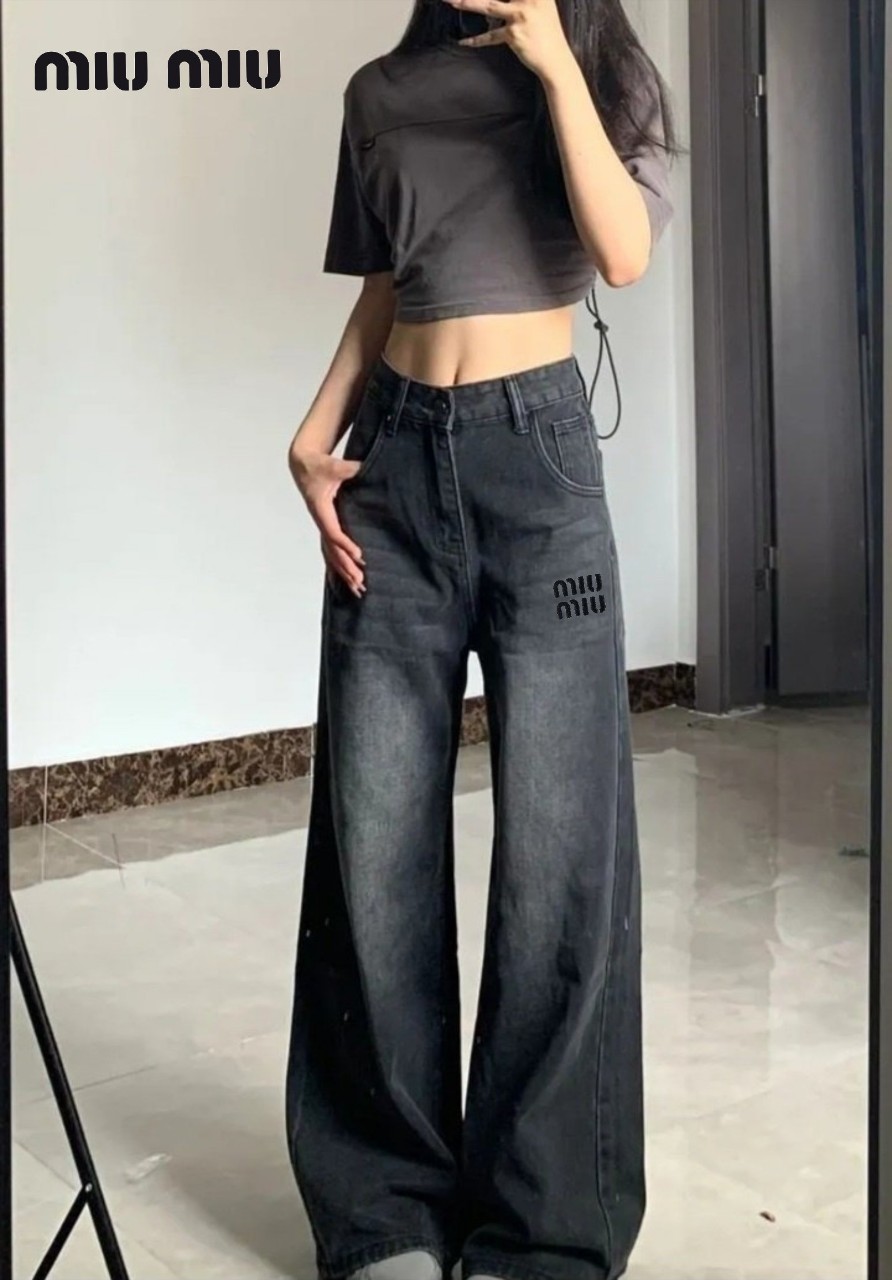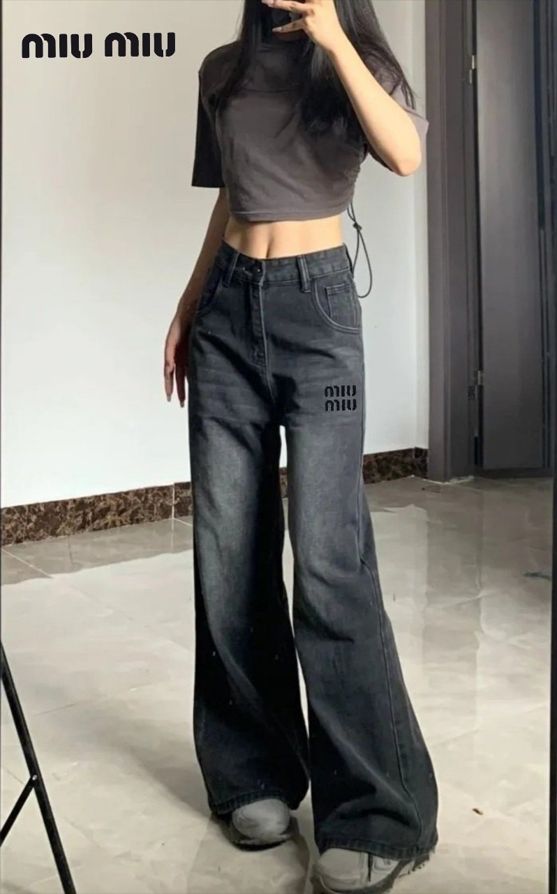 [국내배송]미우미우 자수 블랙 청바지