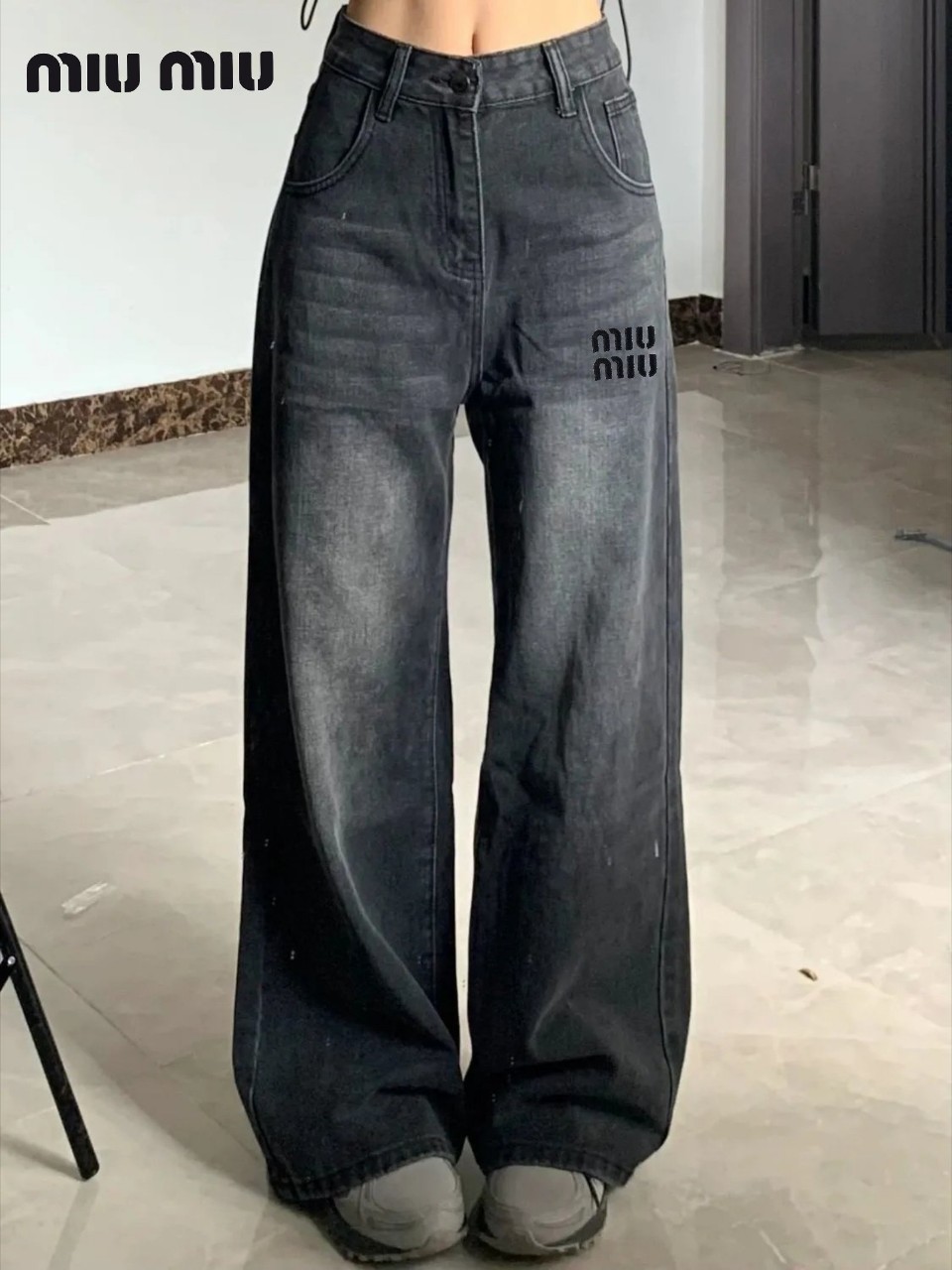 [국내배송]미우미우 자수 블랙 청바지 수량