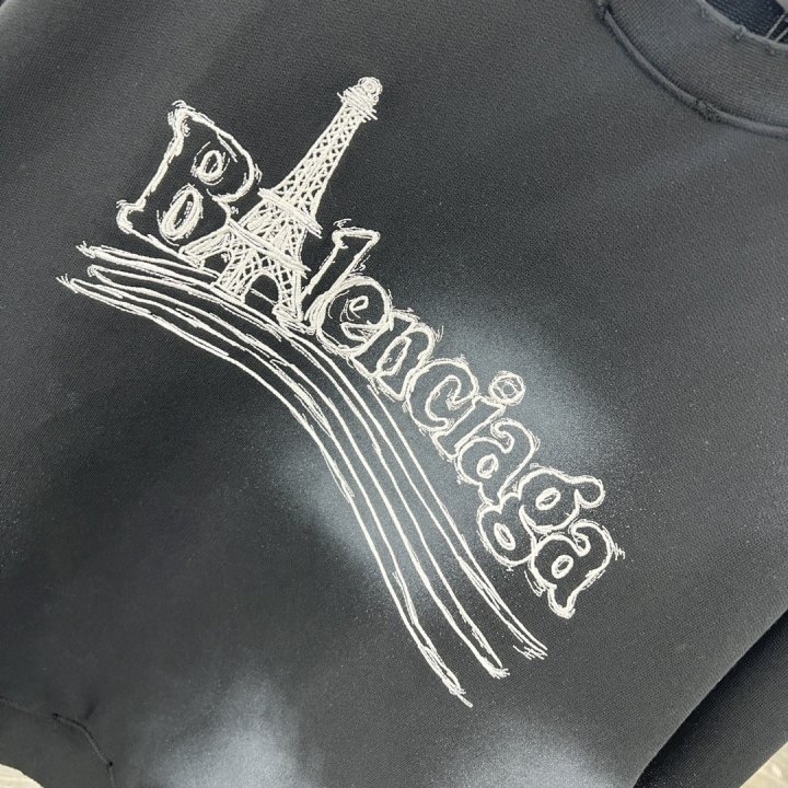[국내배송]발렌시아가 에펠탑 자수로고 맨투맨 워싱 티셔츠