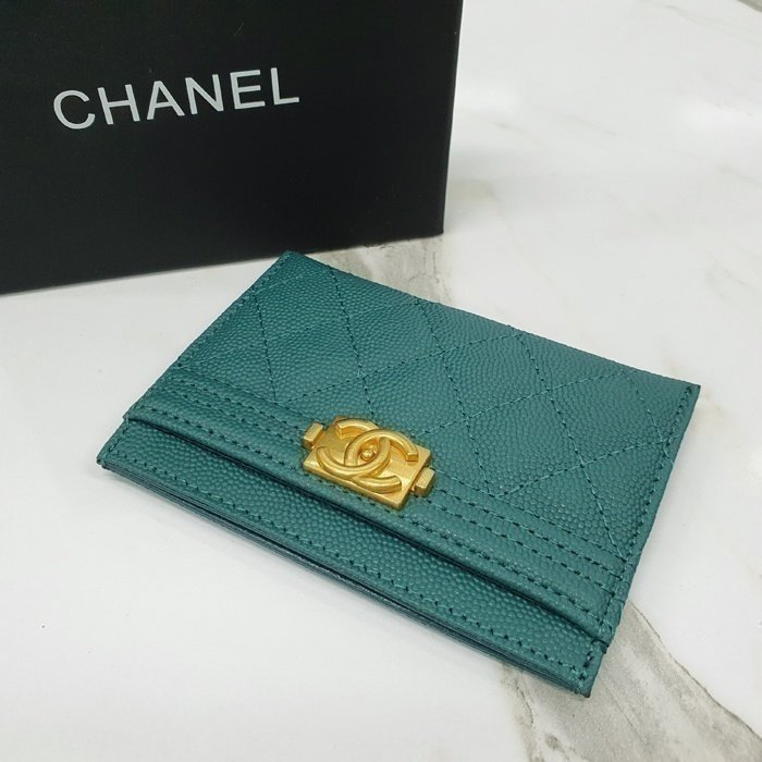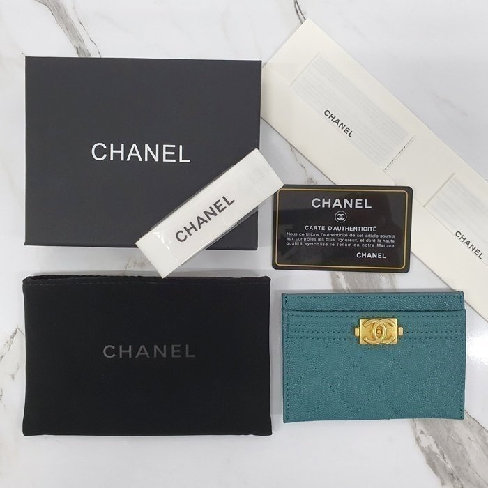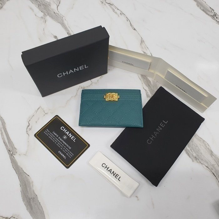 [국내배송]샤넬 보이 카드지갑 캐비어 금장