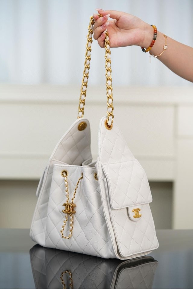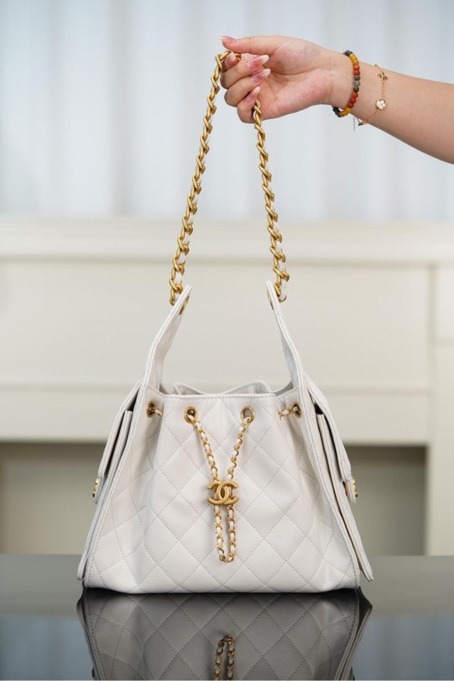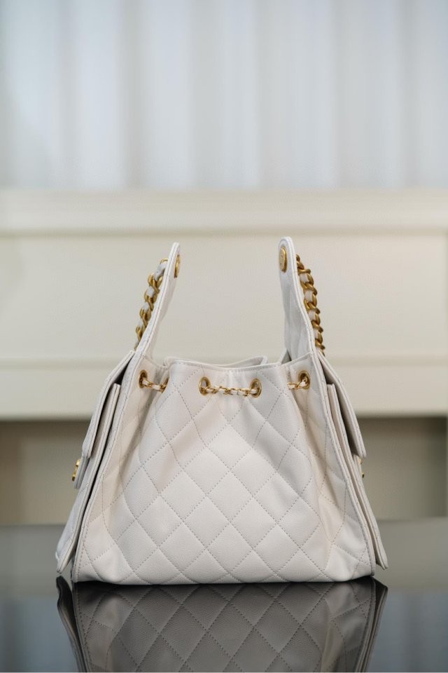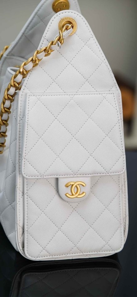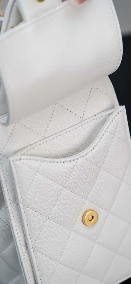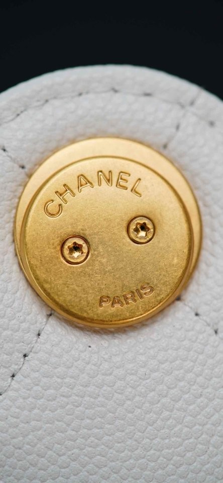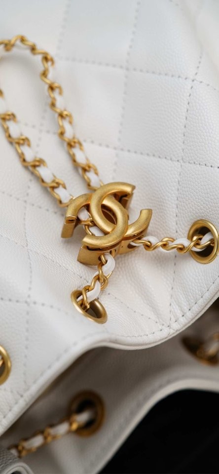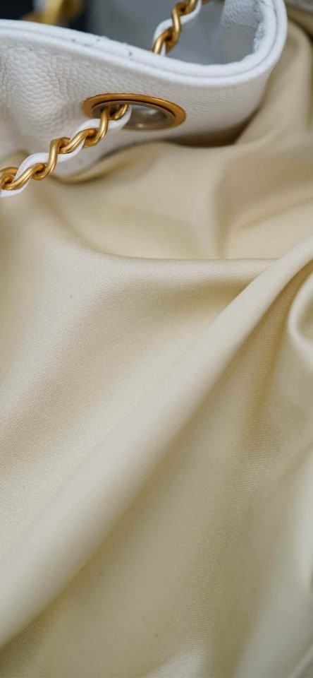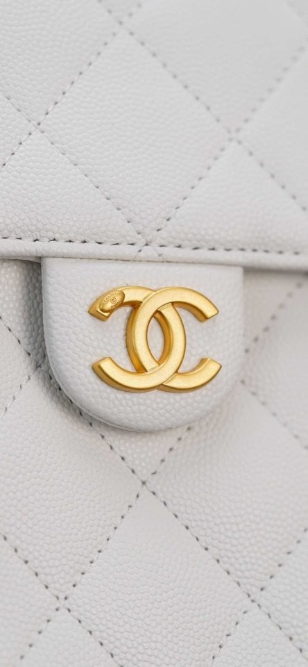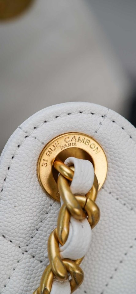 ✔ 은은한 광택의 화이트 HAAS 캐비어 가죽 + 빈티지 골드 체인
