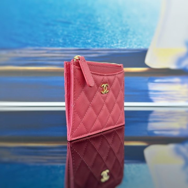[국내배송]샤넬 클래식 지퍼 카드지갑 캐비어 핑크 금장 수량