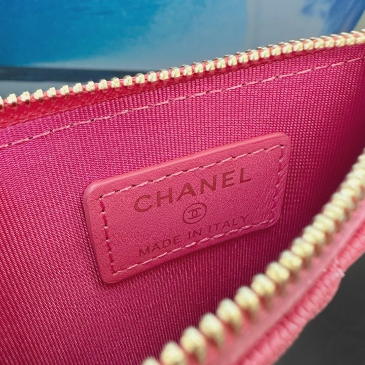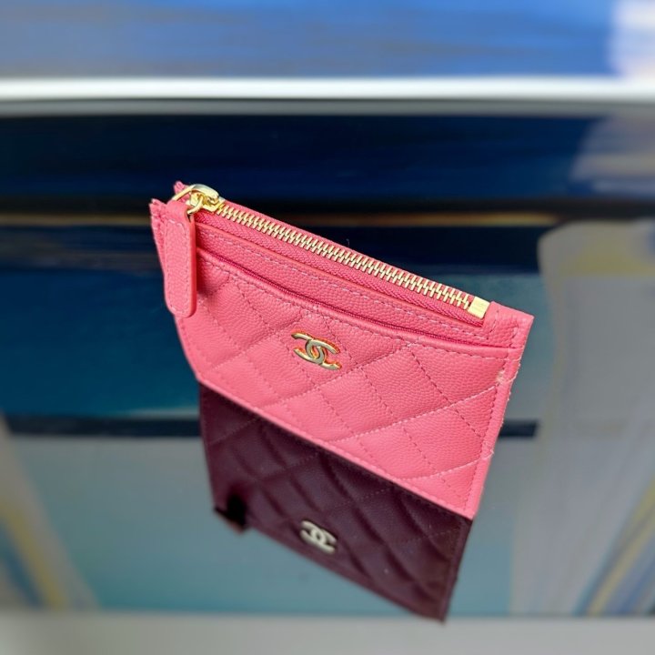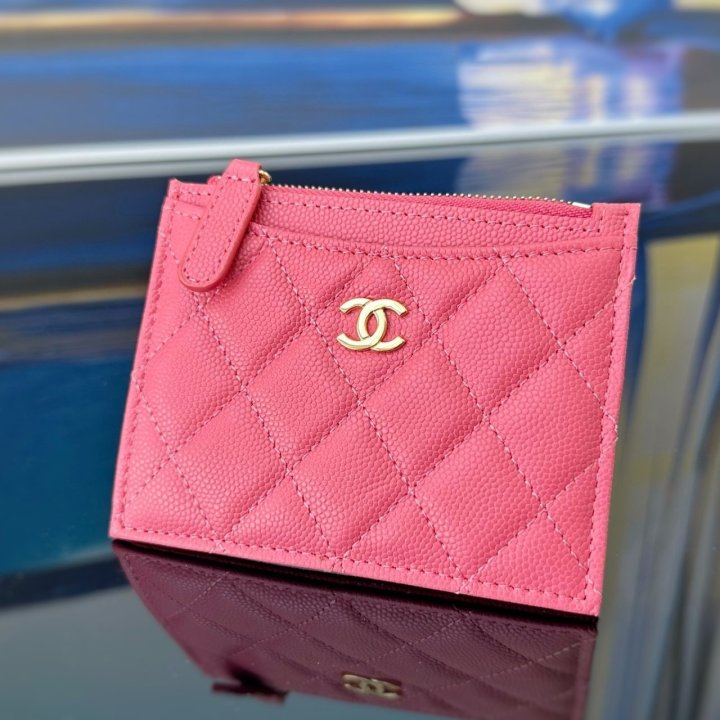 [국내배송]샤넬 클래식 지퍼 카드지갑 캐비어 핑크 금장