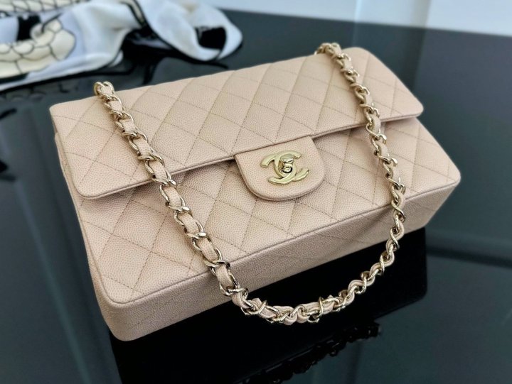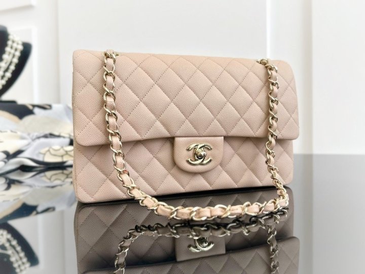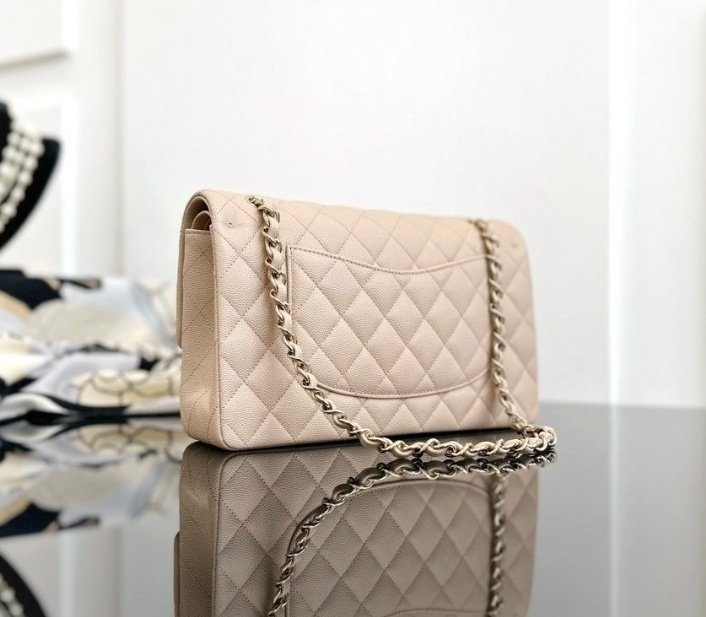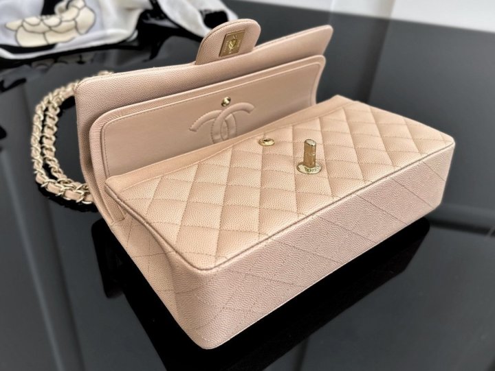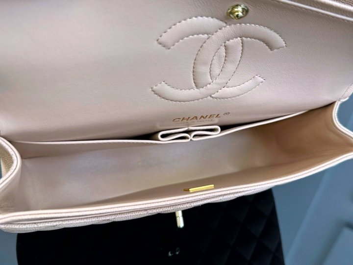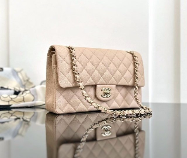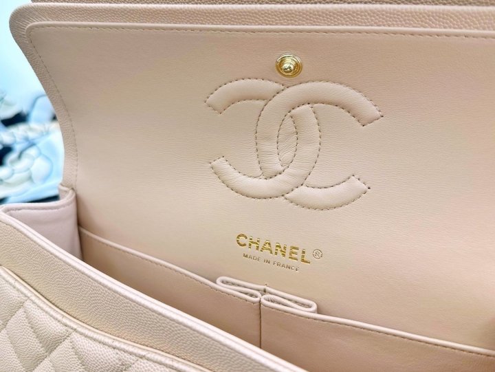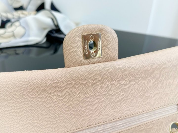 [국내배송]샤넬 클래식 플랩백 미듐 베이지 캐비어 금장 A01112