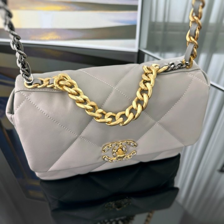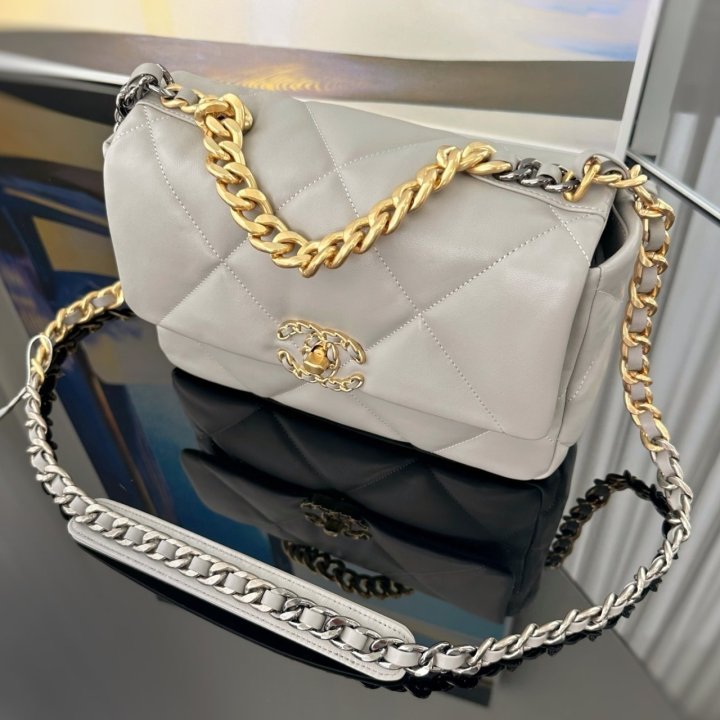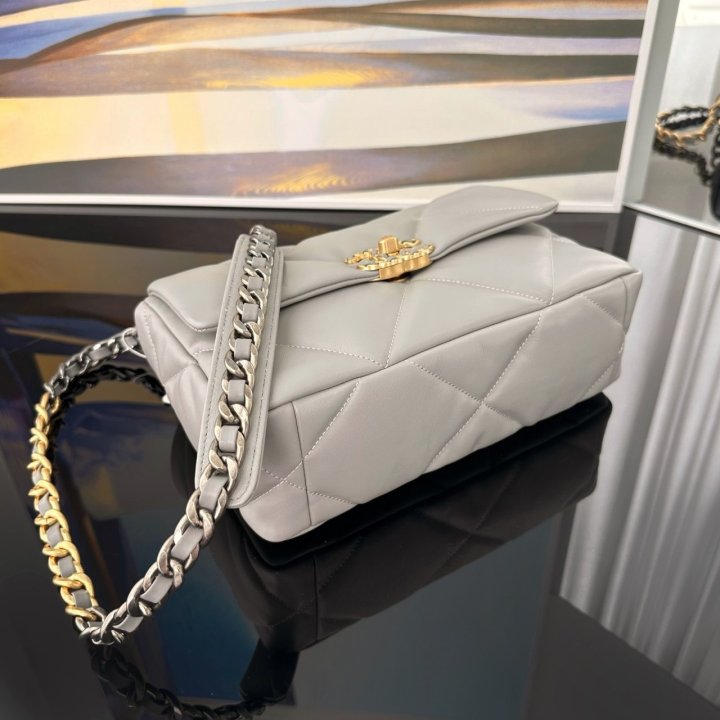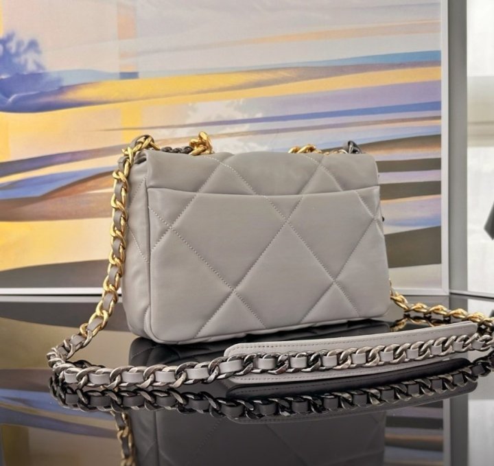 [국내배송]샤넬 19 플랩백 미듐 그레이 금장 AS1160