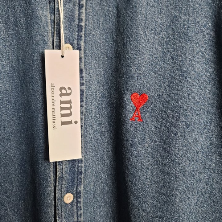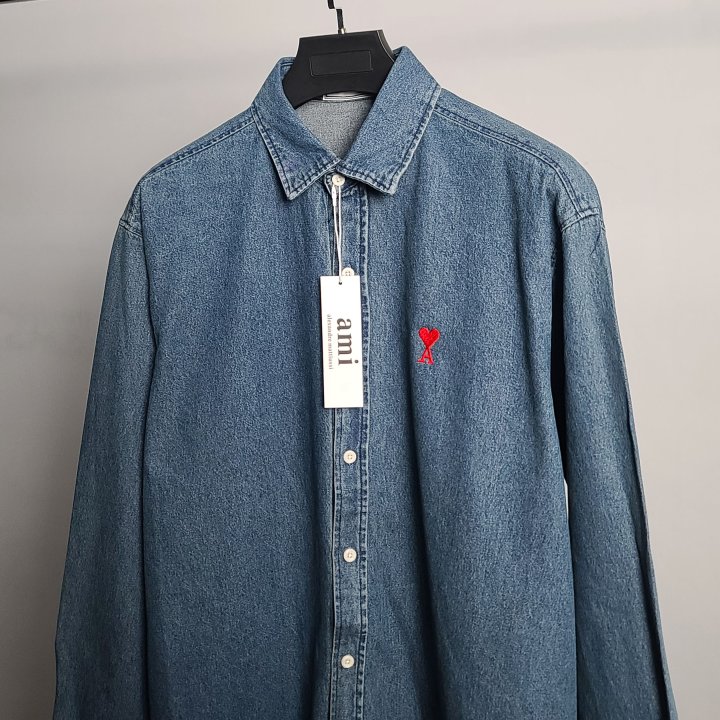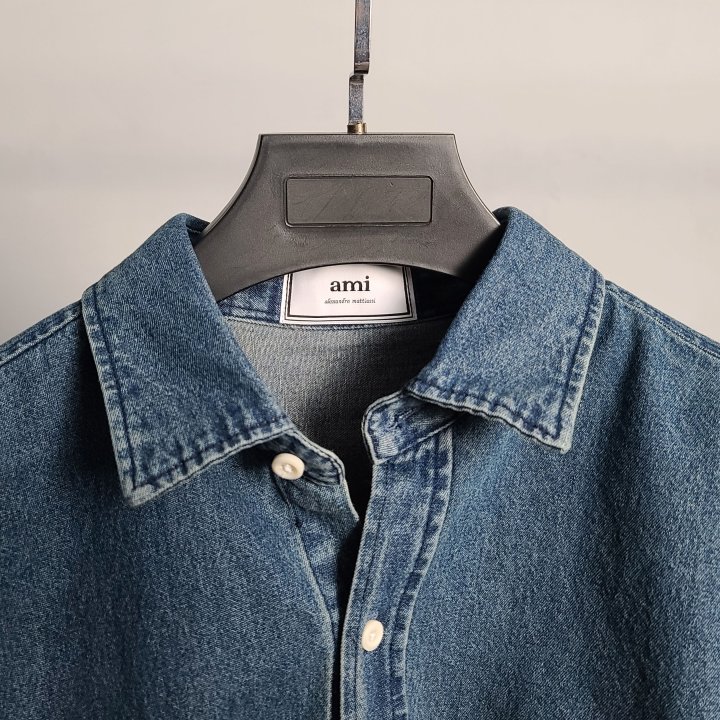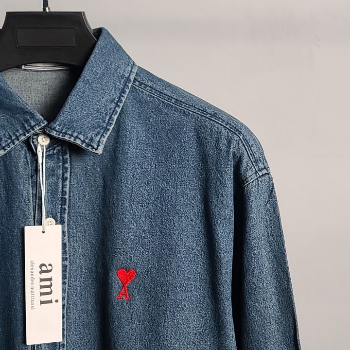 [국내배송]아미 스몰하트자수 오버 데님 셔츠
