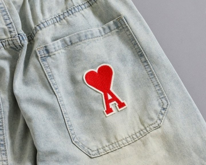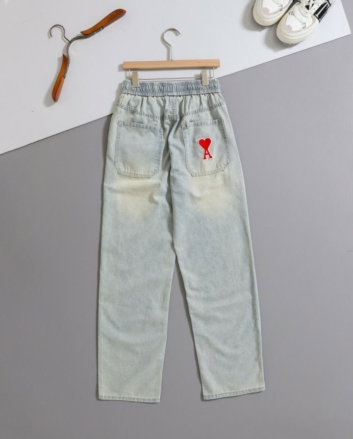 [국내배송]아미 하트로고 세미 와이드 진