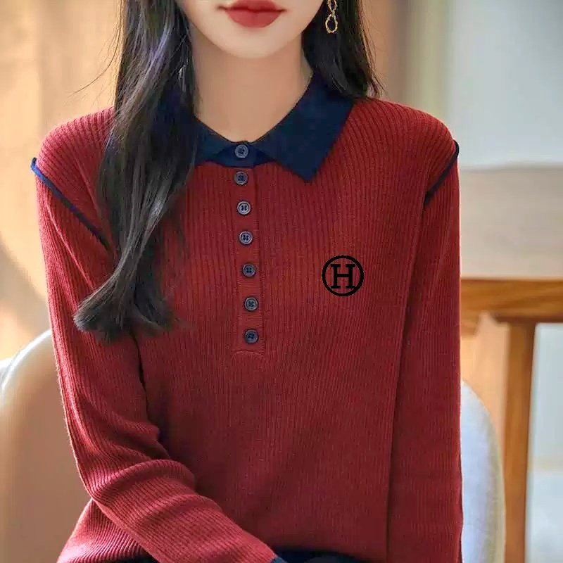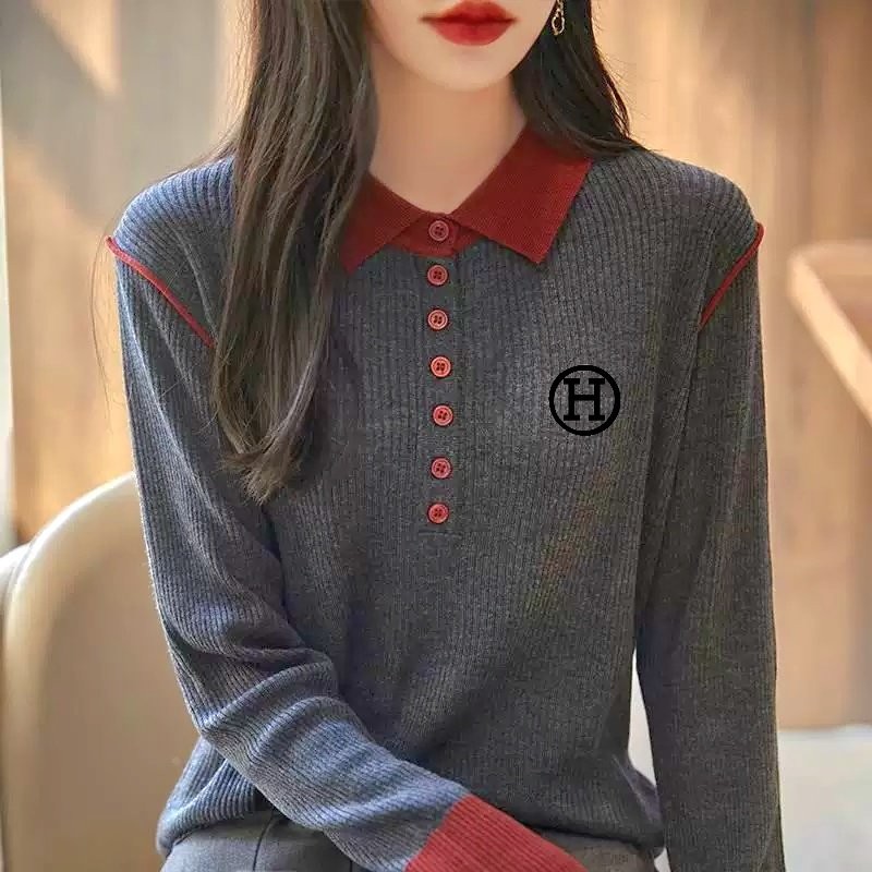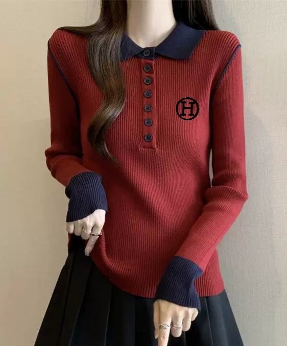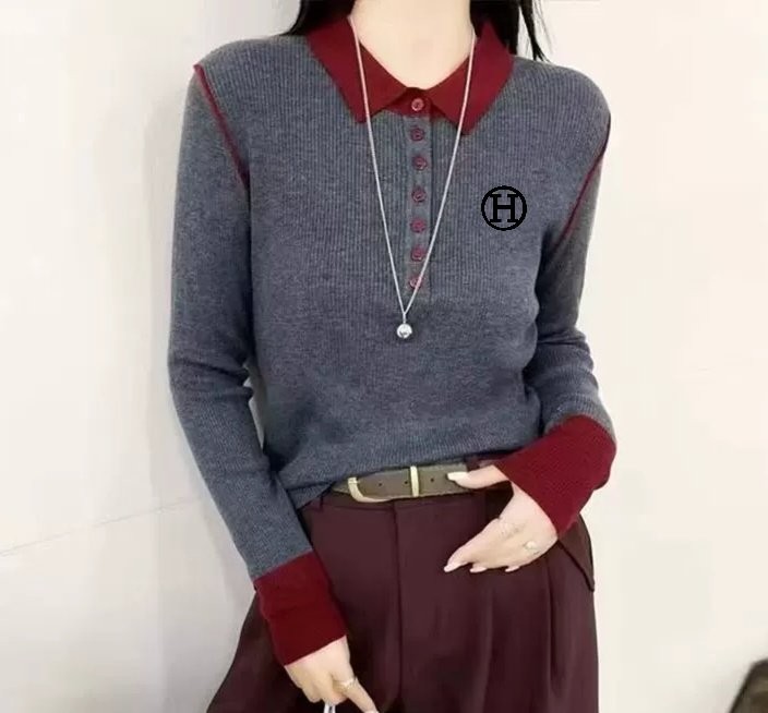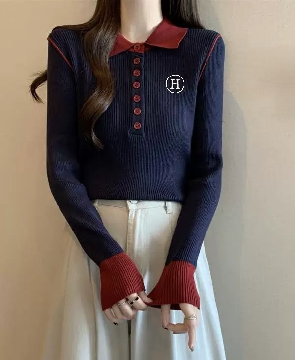 [국내배송]에르메스 H 자수 숄더 삥줄 포인트 카라 니트