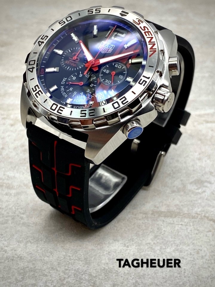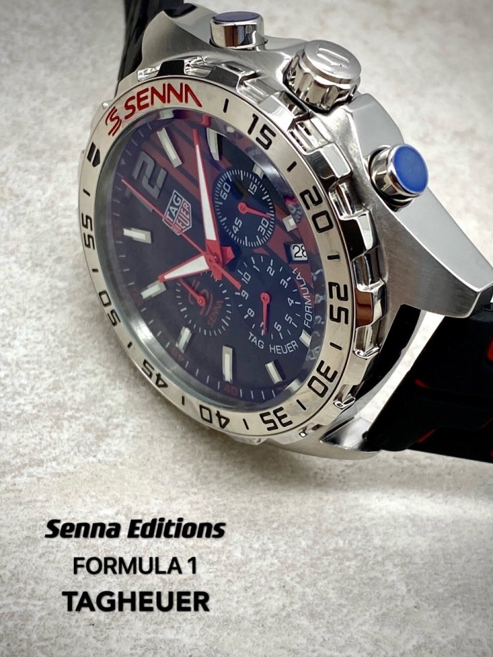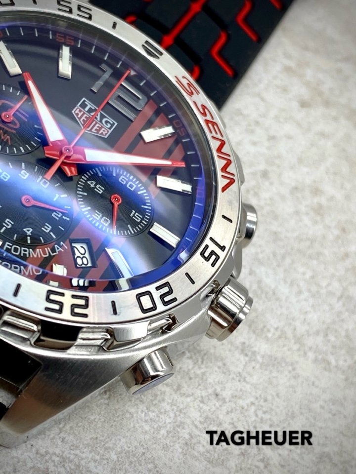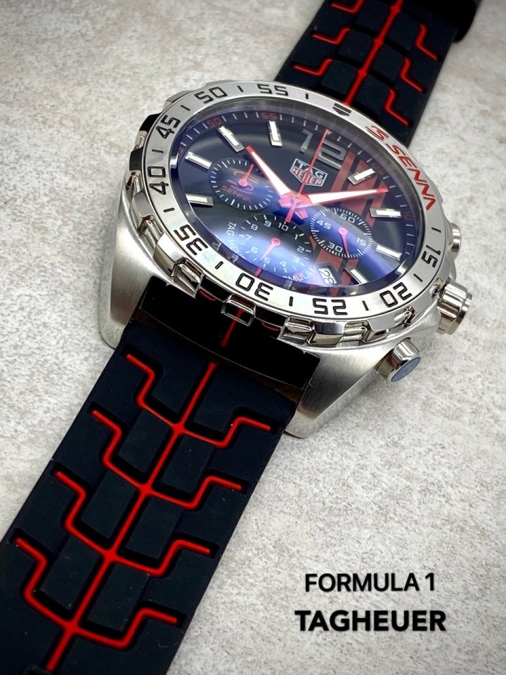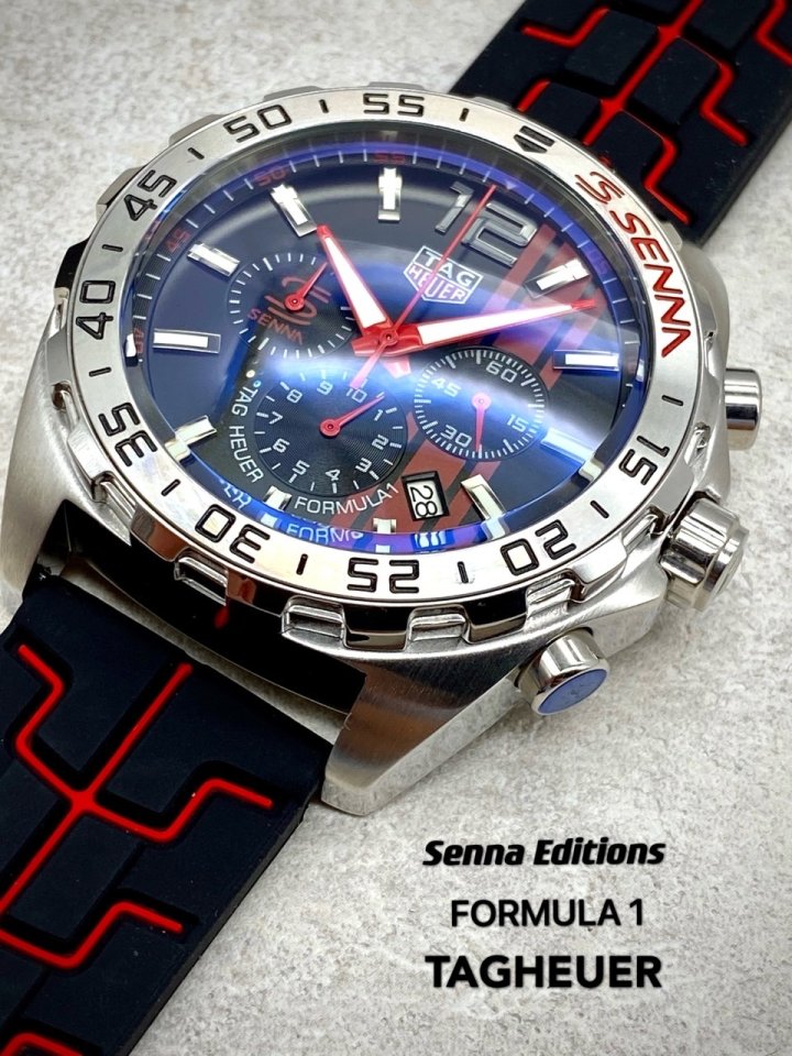 카레이싱에서 영감을 얻은 클래식 하면서도 현대적인 스포츠시계인 까레라 칼리버 호이어 01 세나 리미티드 에디션 입니다 크롬베젤과 속도 스포츠카 계기판을 연상시키는 다이얼 디자인 태그호이어 특유의 스포츠카 연상시키는 타이어 러버스트랩의 조화가 고급스러움을 더합니다 데일리 워치로 강추합니다 고급 케이스 포함