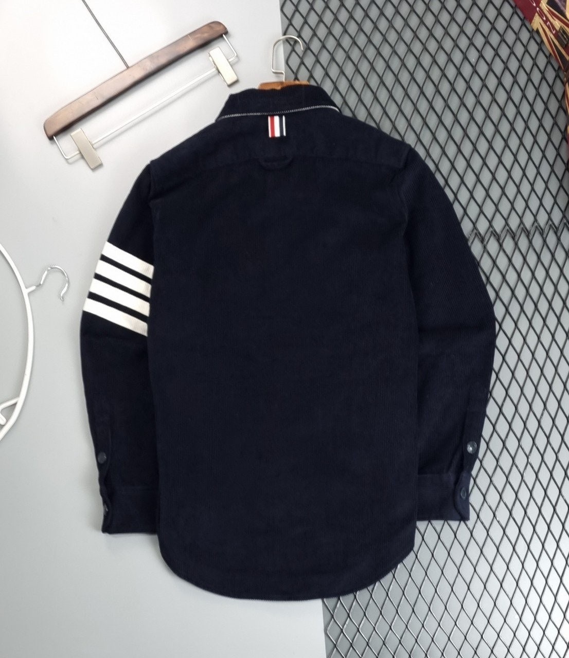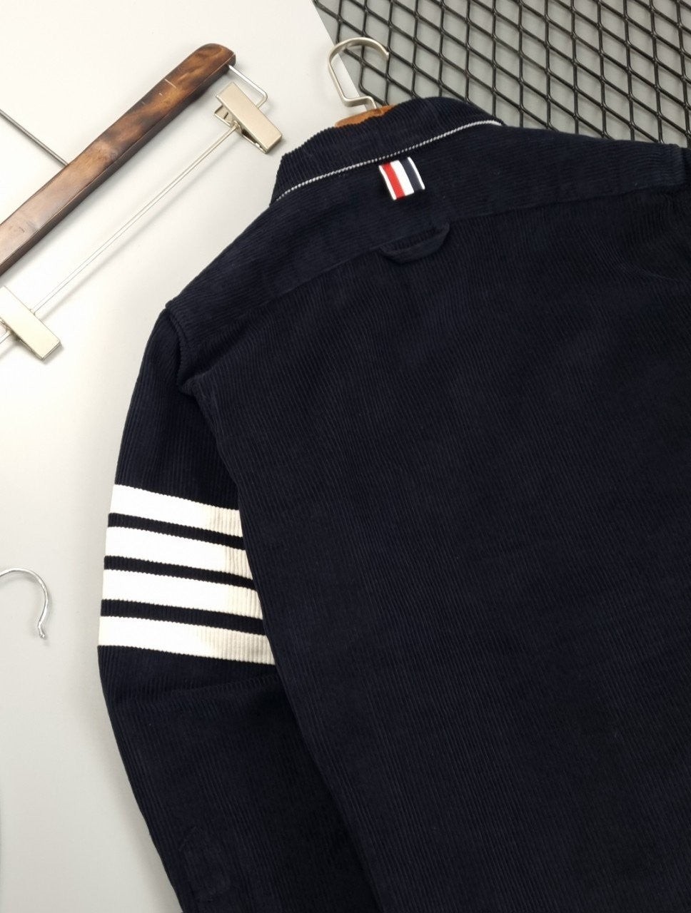 [국내배송]톰브라운 가먼트다이 코듀로이 사선완장 프론트 셔츠자켓 (11월 10일까지만 판매)