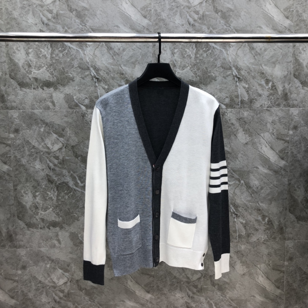 [국내배송]톰브라운 더블 울 오프화이트 블록컬러 5버튼 가디건