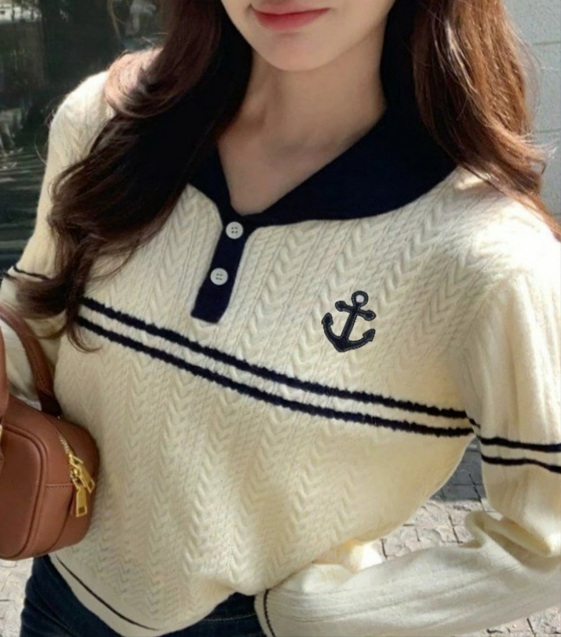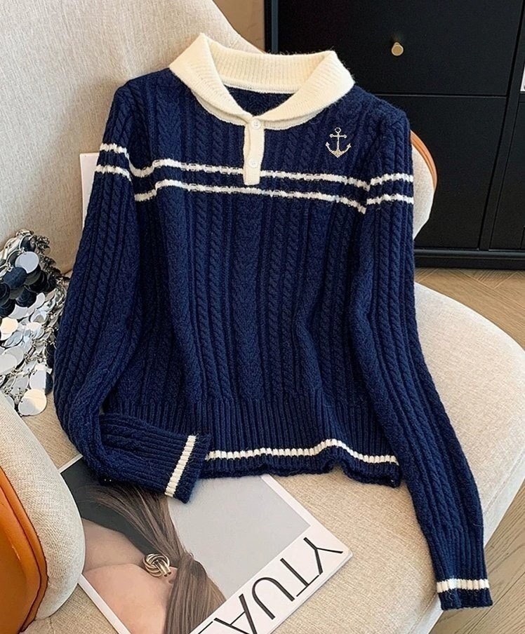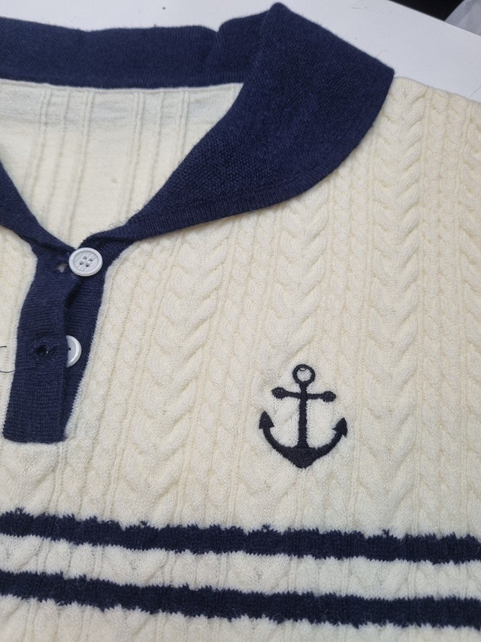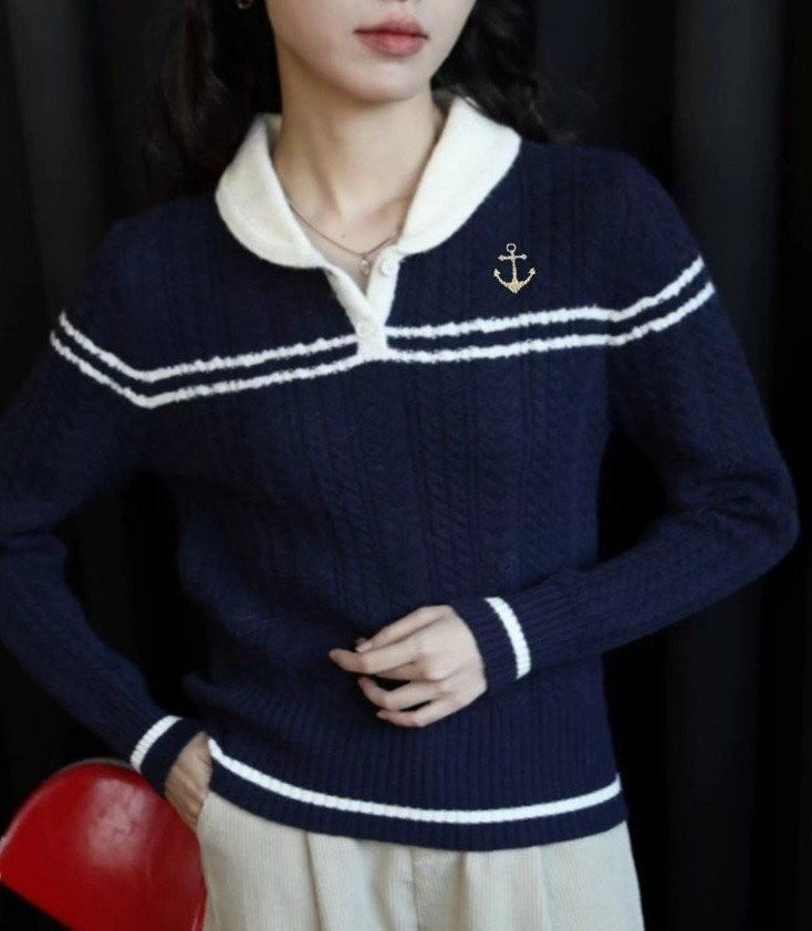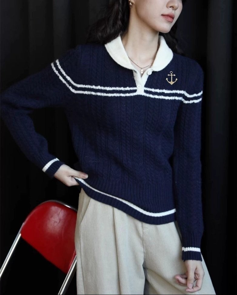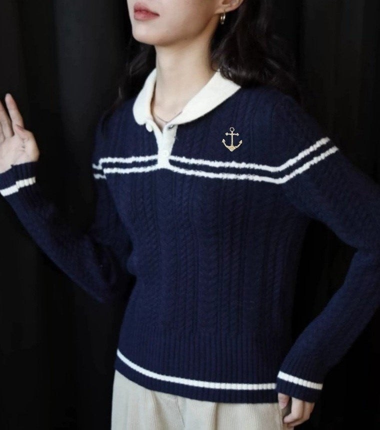 [국내배송]톰브라운 앵커자수 넥포인트 카라 니트