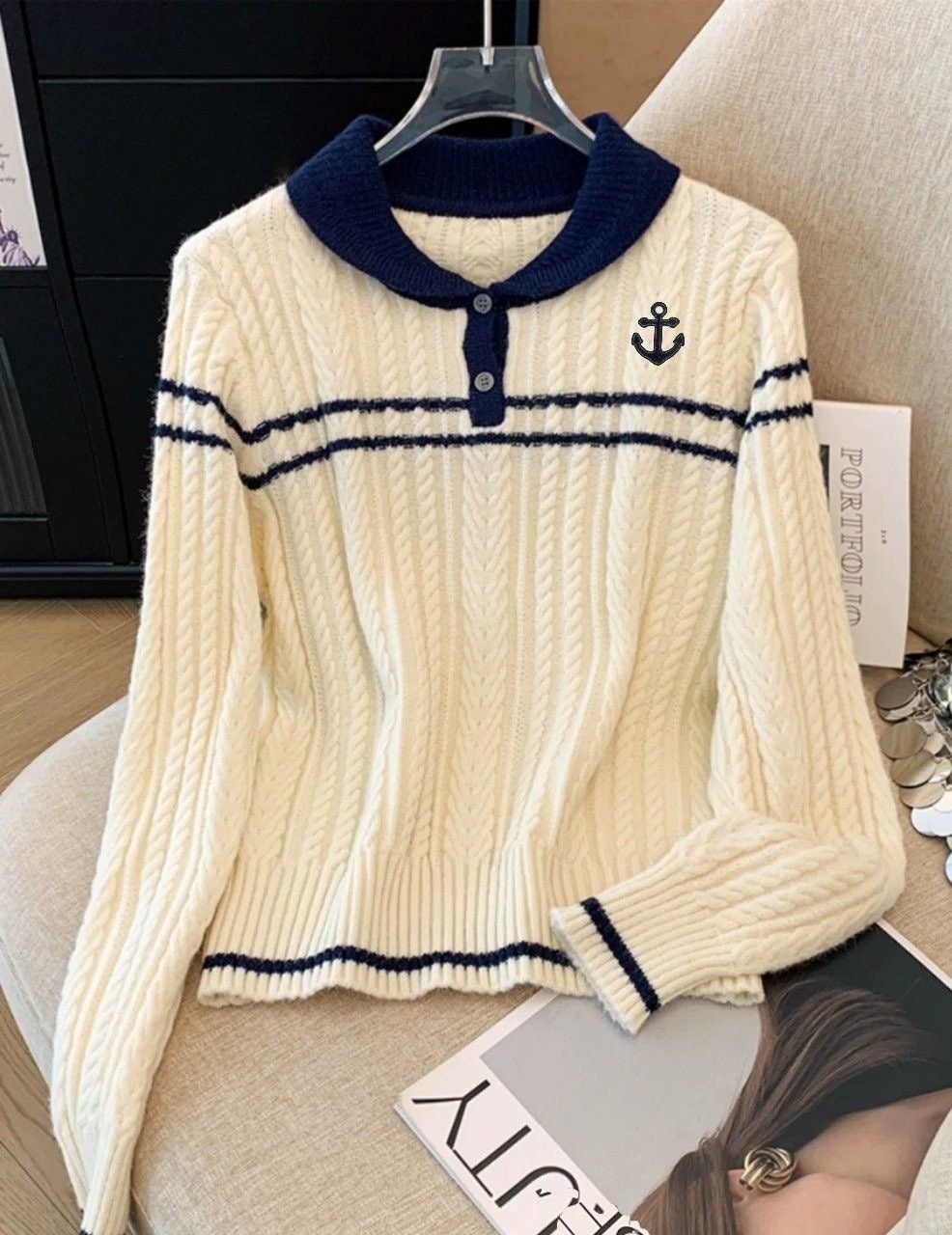 [국내배송]톰브라운 앵커자수 넥포인트 카라 니트 수량