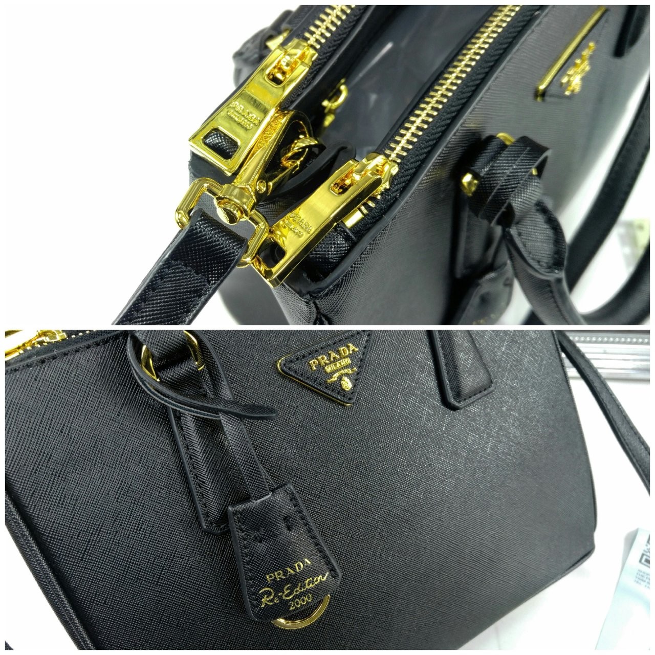 가죽 핸들 탈부착이 가능한 조절형 가죽 숄더 스트랩 탈부착형 가죽 키체인 외부 지퍼 포켓 메탈 하드웨어 전면 가죽 트라이앵글에 메탈 레터링 로고 측면 스냅 클로저 포켓 2개(하나는 지퍼식)가 있는 로고 프린트 나일론 라이닝 받침대가 있음