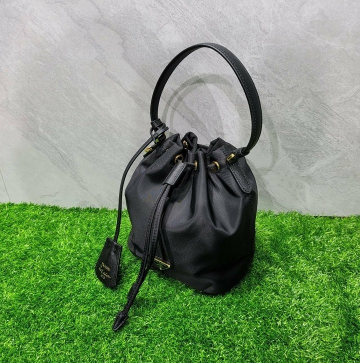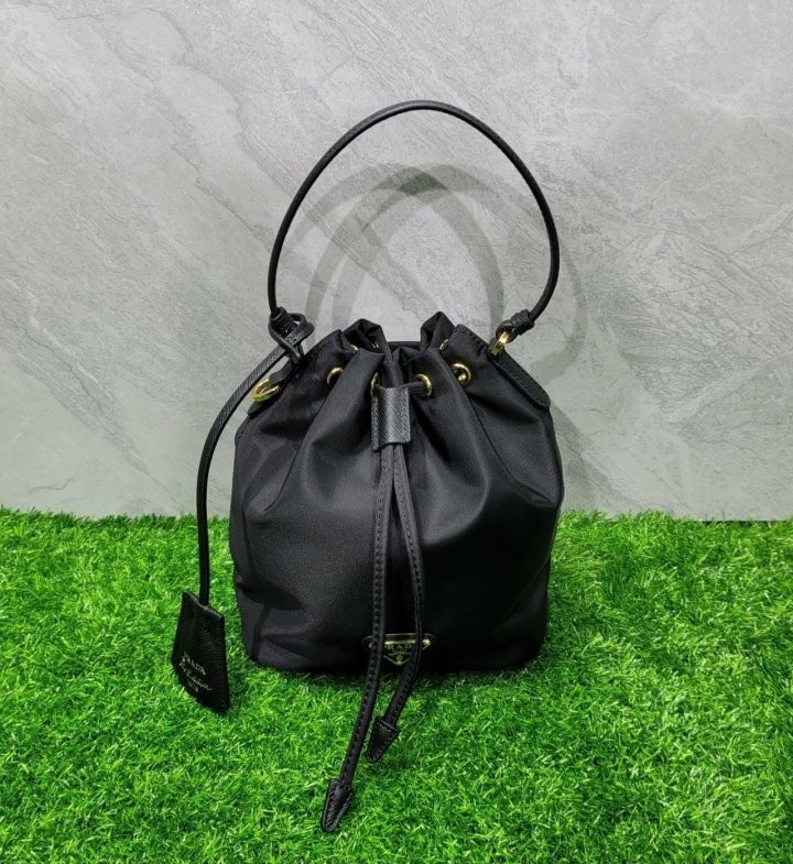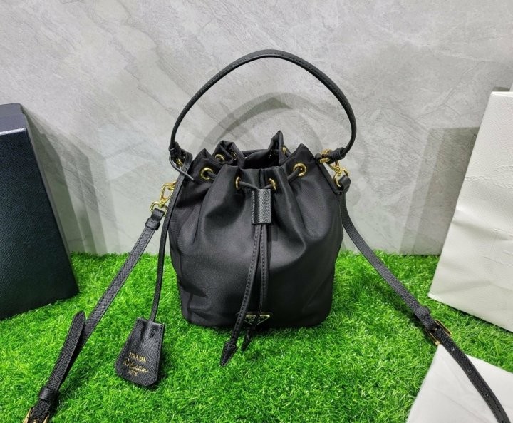 프라다 여성 리나일론 버킷백 입고 되었습니다 현재 아주 핫한 제품으로 ZEN역시 웨이팅이 필요할 정도로 인기제품 입니다. 퀄리티는 현존 최고로 ZEN급입니다. 선물용으로 너무 좋은제품 입니다. 사진동일 케이스, 더스트, 쇼핑백, 풀구성 출고 입니다