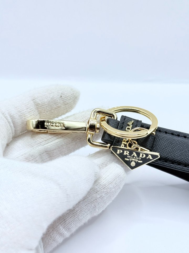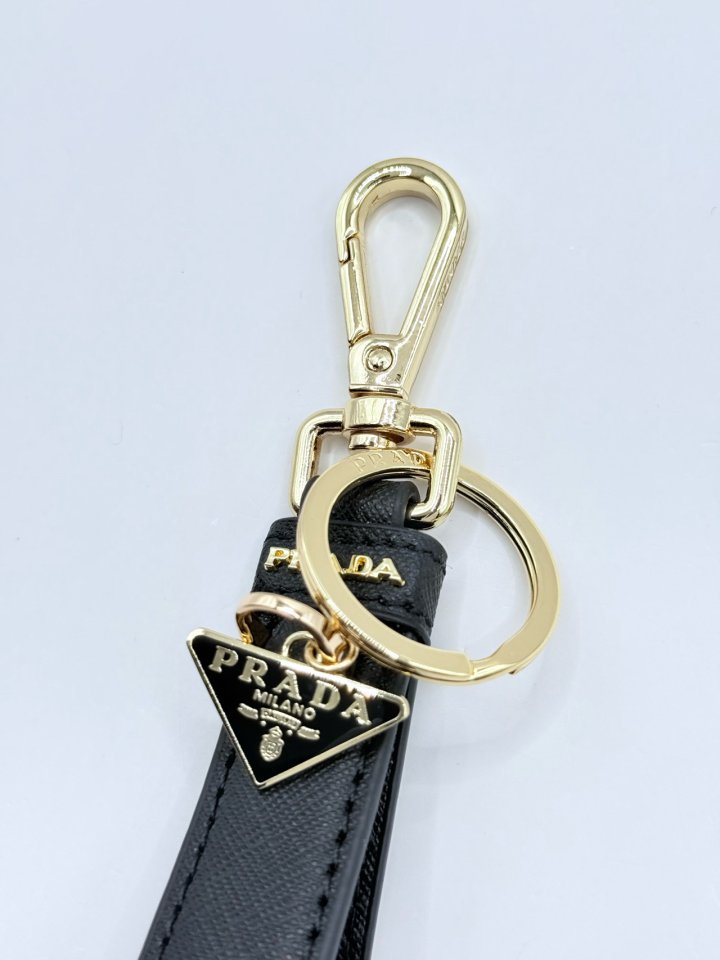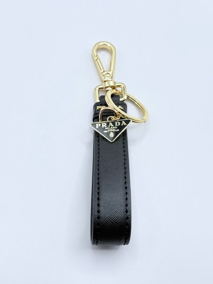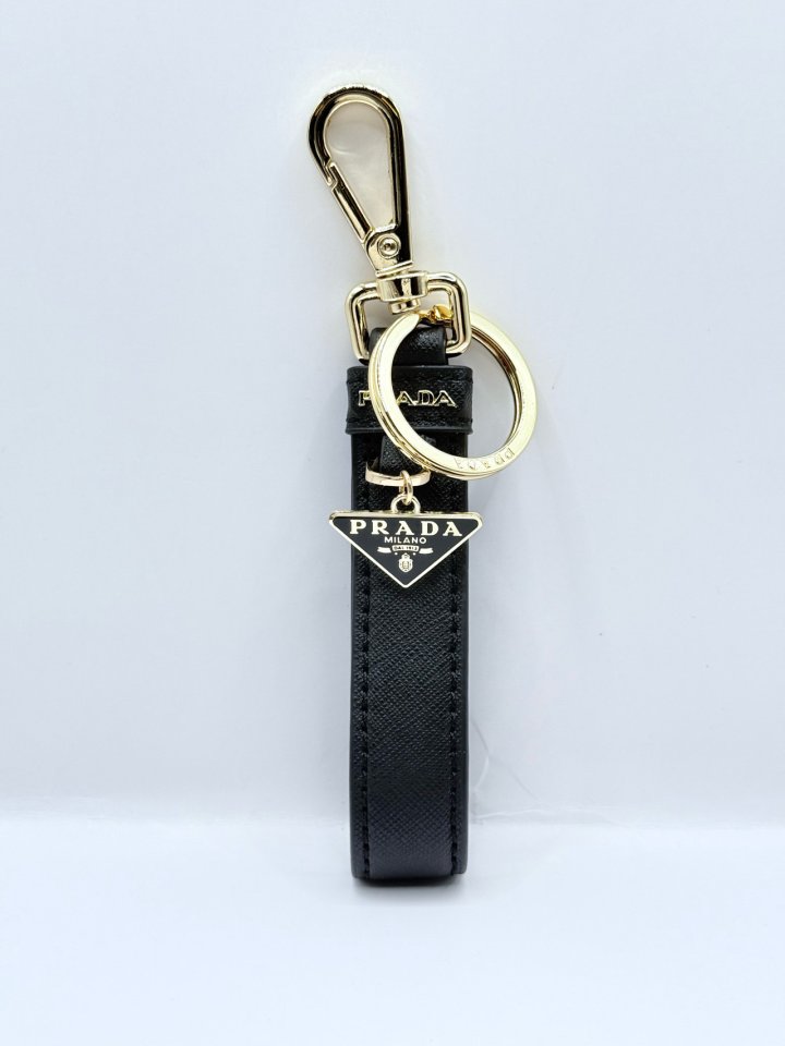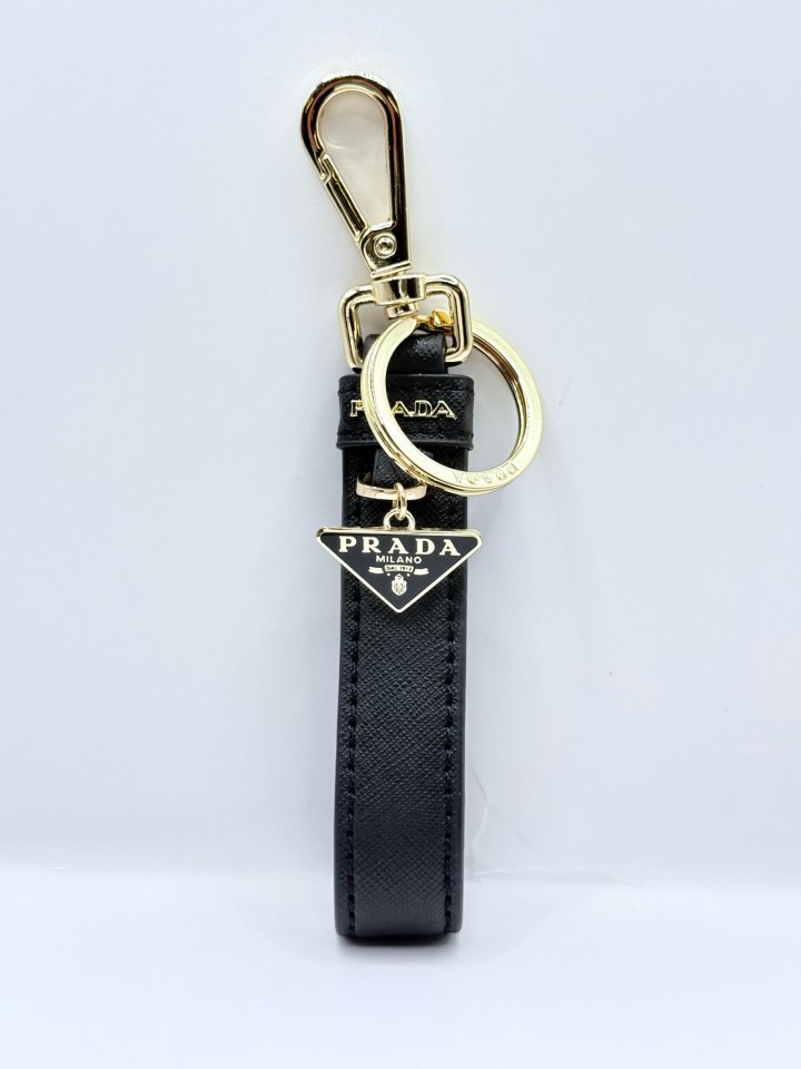 [국내배송]프라다 사피아노 트라이앵글 로고 키링 블랙 골드