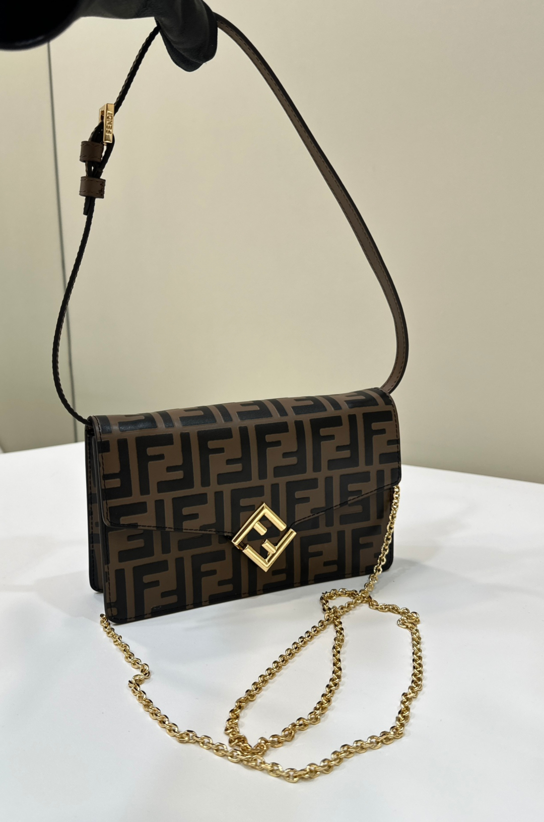[프리미엄/해외배송]펜디 바게트 체인 다이아몬드 WOC(브라운)