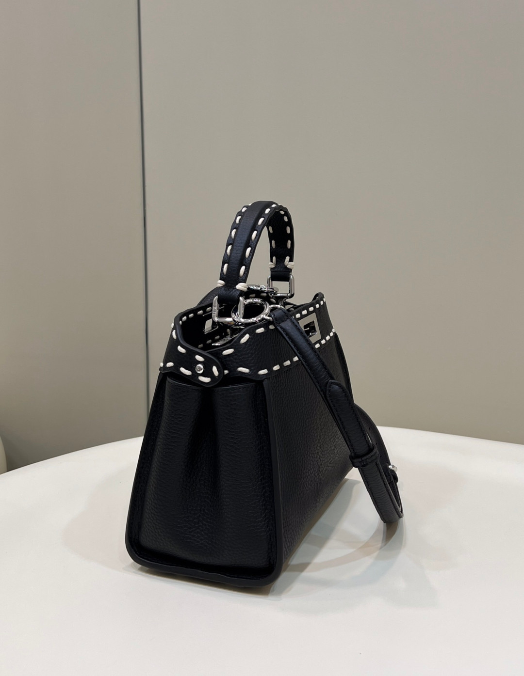 [프리미엄/해외배송]펜디 피카부 백 미니 화이트 탑스티치(블랙)