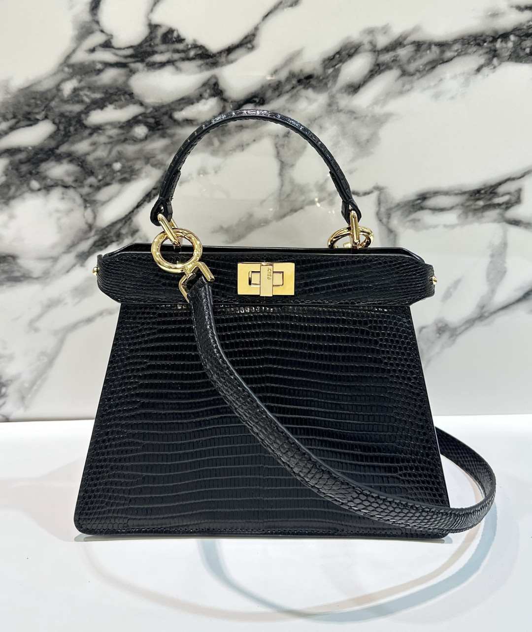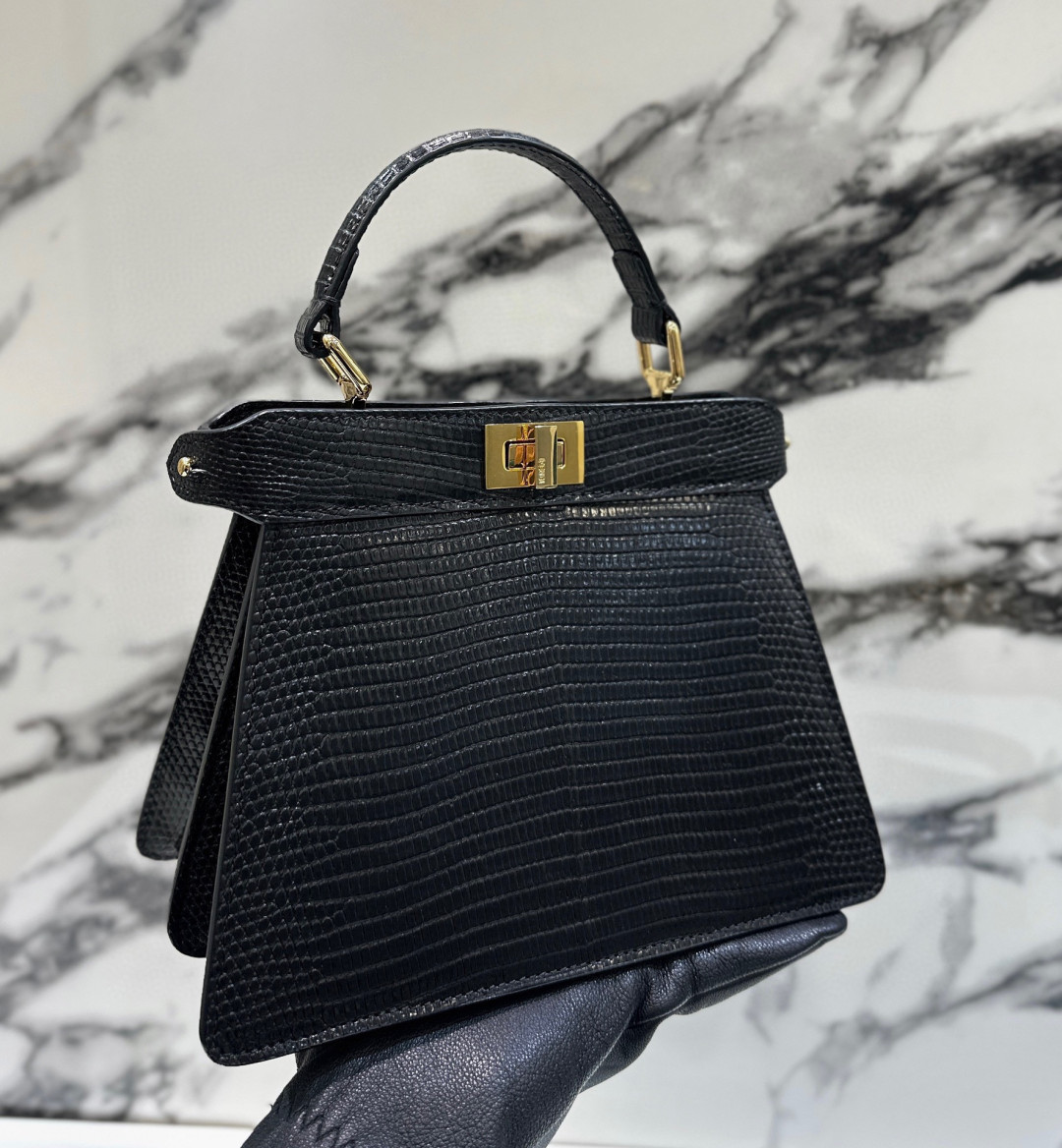 [프리미엄/해외배송]펜디 피카부 백 쁘띠 I See U 크로커다일(블랙)