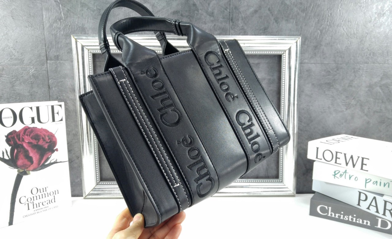 끌로에 로고 자수 장식의 부드러운 카프스킨 토트 백 착용방법: 팔에 걸치거나 숄더 백 & 크로스 백으로 착용