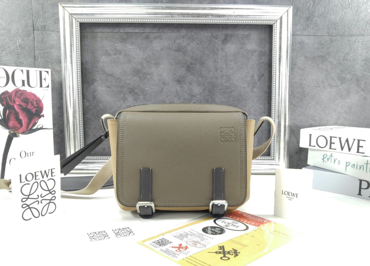[국내배송]로에베 XS 밀리터리 메신저 백 in 소프트 그레인 카프 B553A72