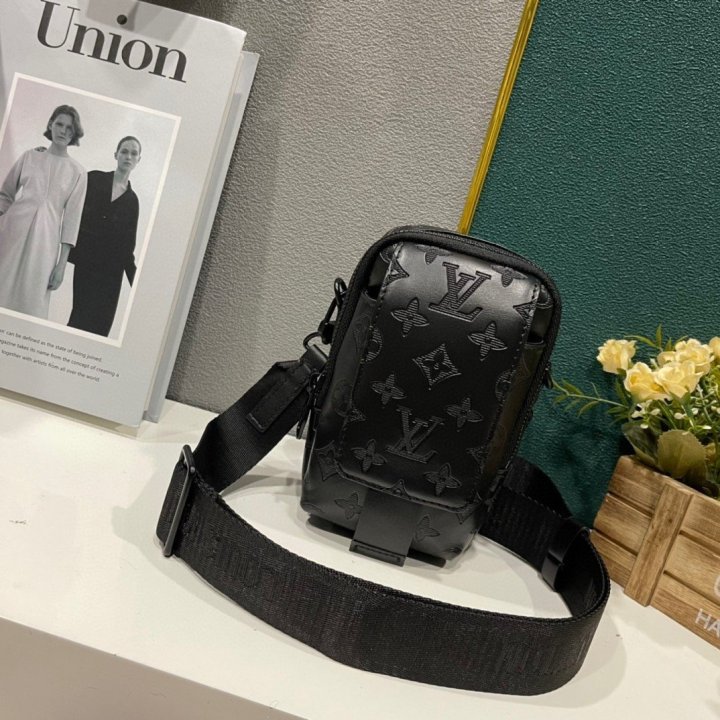 모노그램 마카사르 코팅 캔버스 및 블랙 색상의 카우하이드 가죽 카우하이드 가죽 소재의 트리밍 블랙 색상 금속 디테일 대형 메인 수납공간 휴대폰 수납공간
