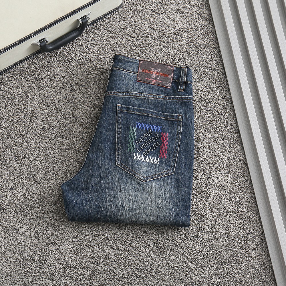 [국내배송]루이비통 2025FW 백포켓 포인트 엠보로고 스판 데님 워싱진