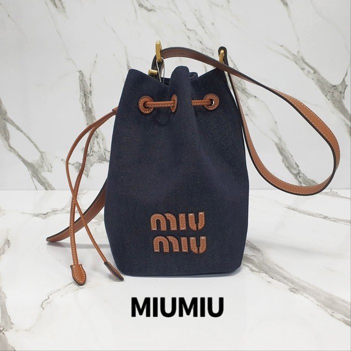 [국내배송]미우미우 로고 데님 버킷백
