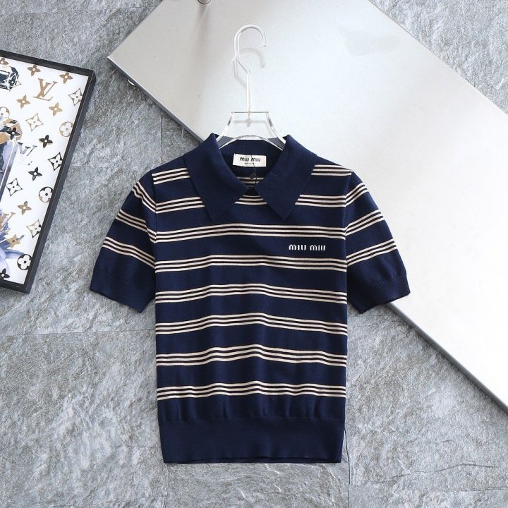 [국내배송]미우미우 신상 단가라 로고 포인트 쿨니트카라티 수량