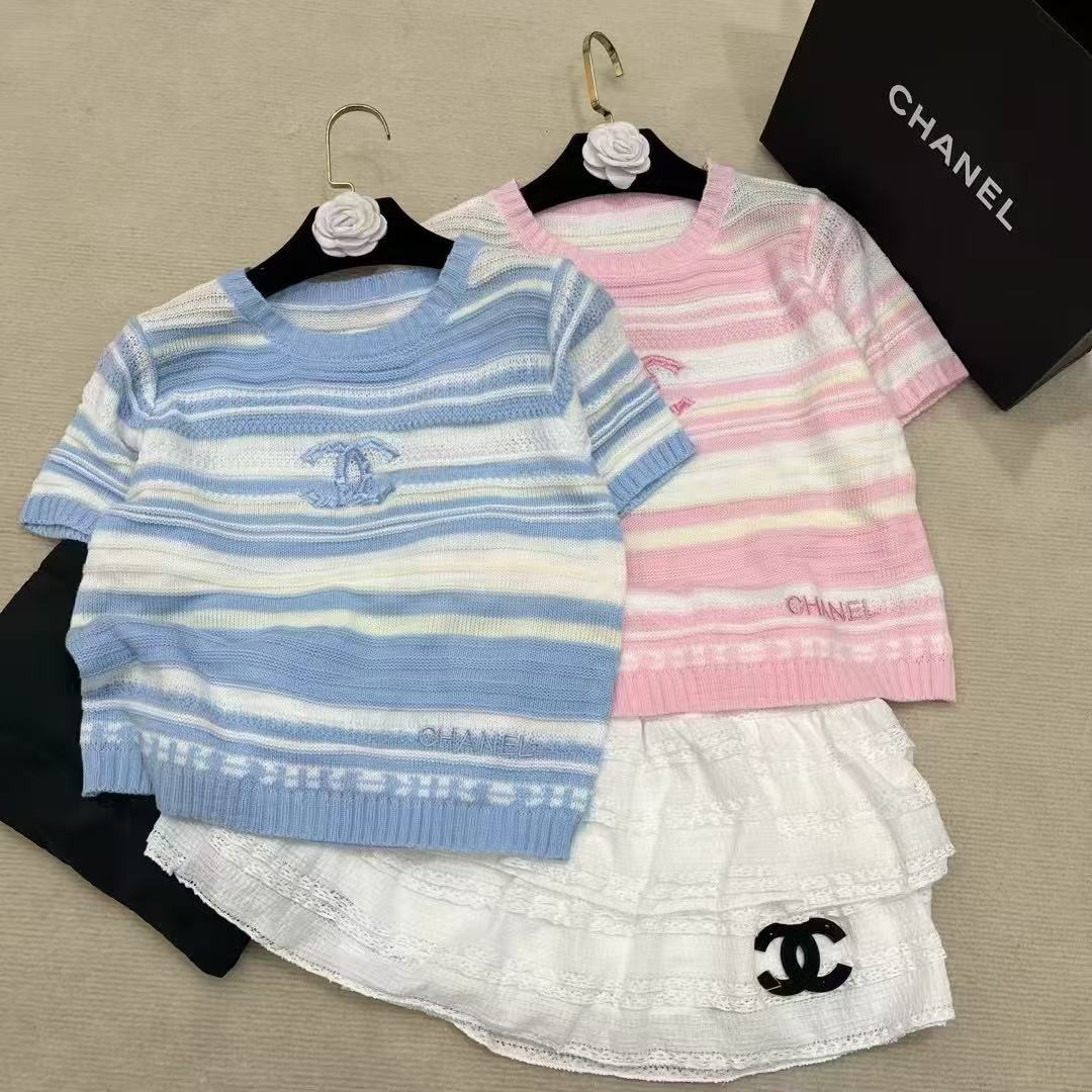 [국내배송]샤넬 스트라이프 더블 크루넥 반팔(2color)