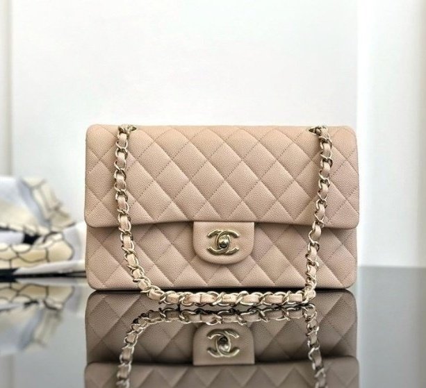 [국내배송]샤넬 클래식 플랩백 미듐 베이지 캐비어 금장 A01112