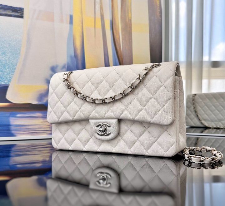 [국내배송]샤넬 클래식 플랩백 미듐 캐비어 화이트 은장 A01112