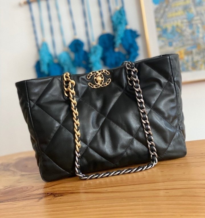 [국내배송]샤넬 19 쇼핑백 램스킨 블랙 금장 AS3660