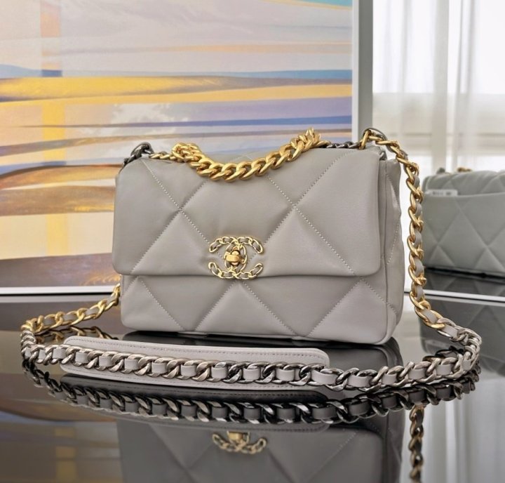 [국내배송]샤넬 19 플랩백 미듐 그레이 금장 AS1160