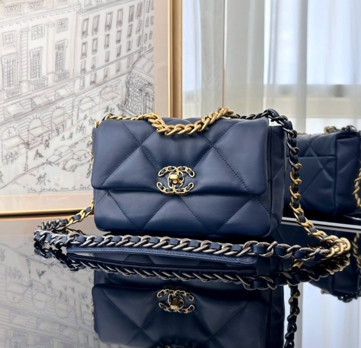 [국내배송]샤넬 19 플랩백 미듐 네이비 금장 AS1160