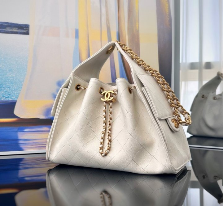 [국내배송]샤넬 25백 스몰 캐비어 화이트 금장 AS5293
