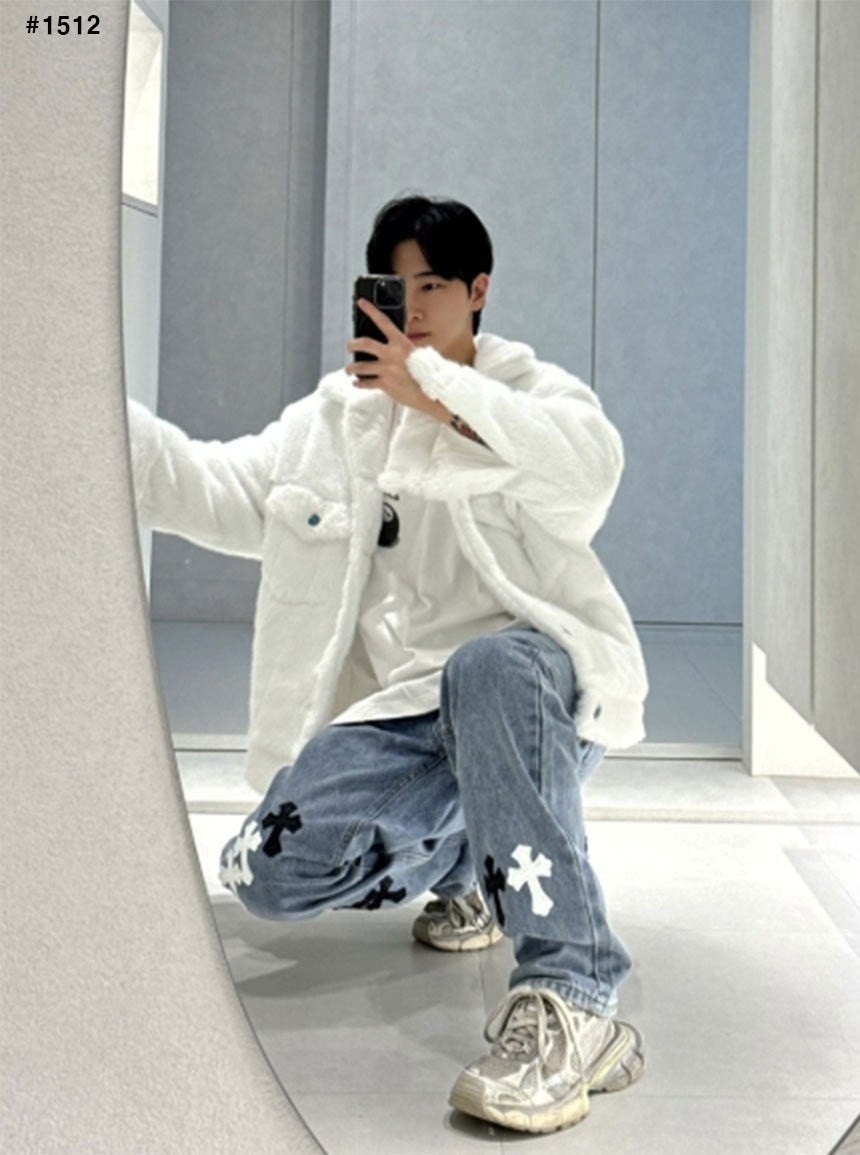 [국내배송]크롬하츠 블랙 화이트 크로스 패치 데님진