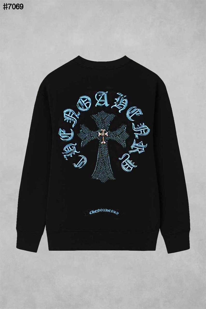 [국내배송]크롬하츠 블루 크로스 스틸 로고 빈티지 맨투맨 티셔츠