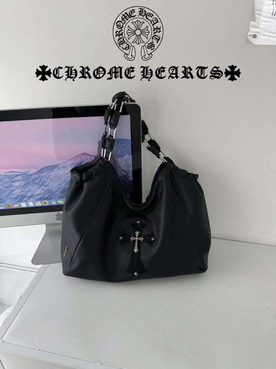 ■세메터리 십자가 가죽 자수와 함께 뒷면 하단에 크(롬)하츠 두루마리 로고가 은빛 포인트로 들어가있는 유니크하고 스타일리쉬한 세메터리 백 입니다.