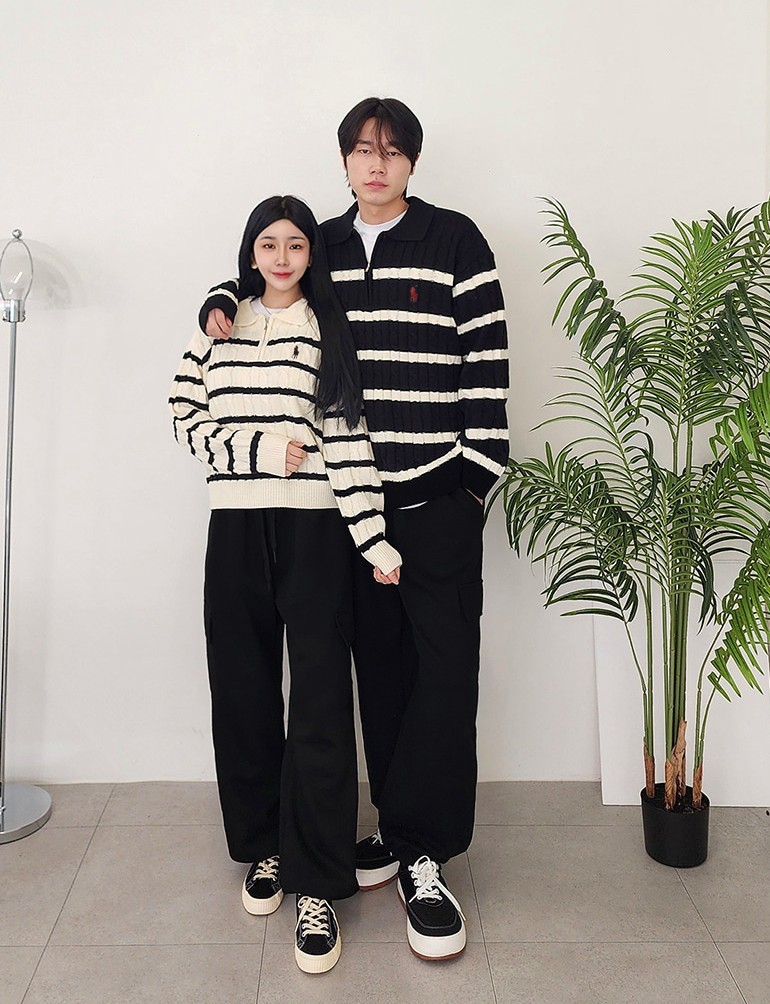 [국내배송]폴로 하프 단가라 케이블 반집업